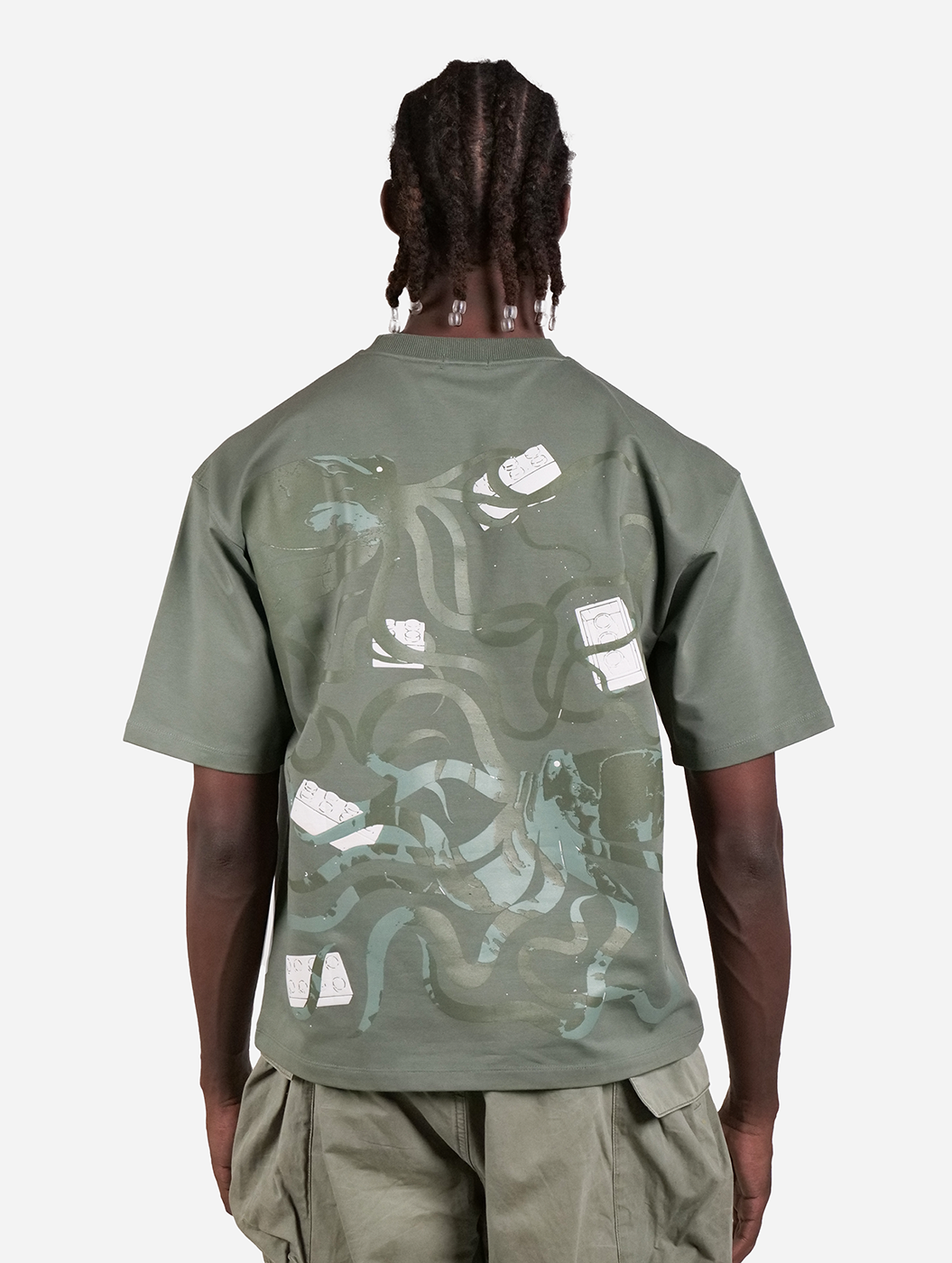 Octupus' Garden Green Graphic Drop Shoulder Oversized T-Shirt
