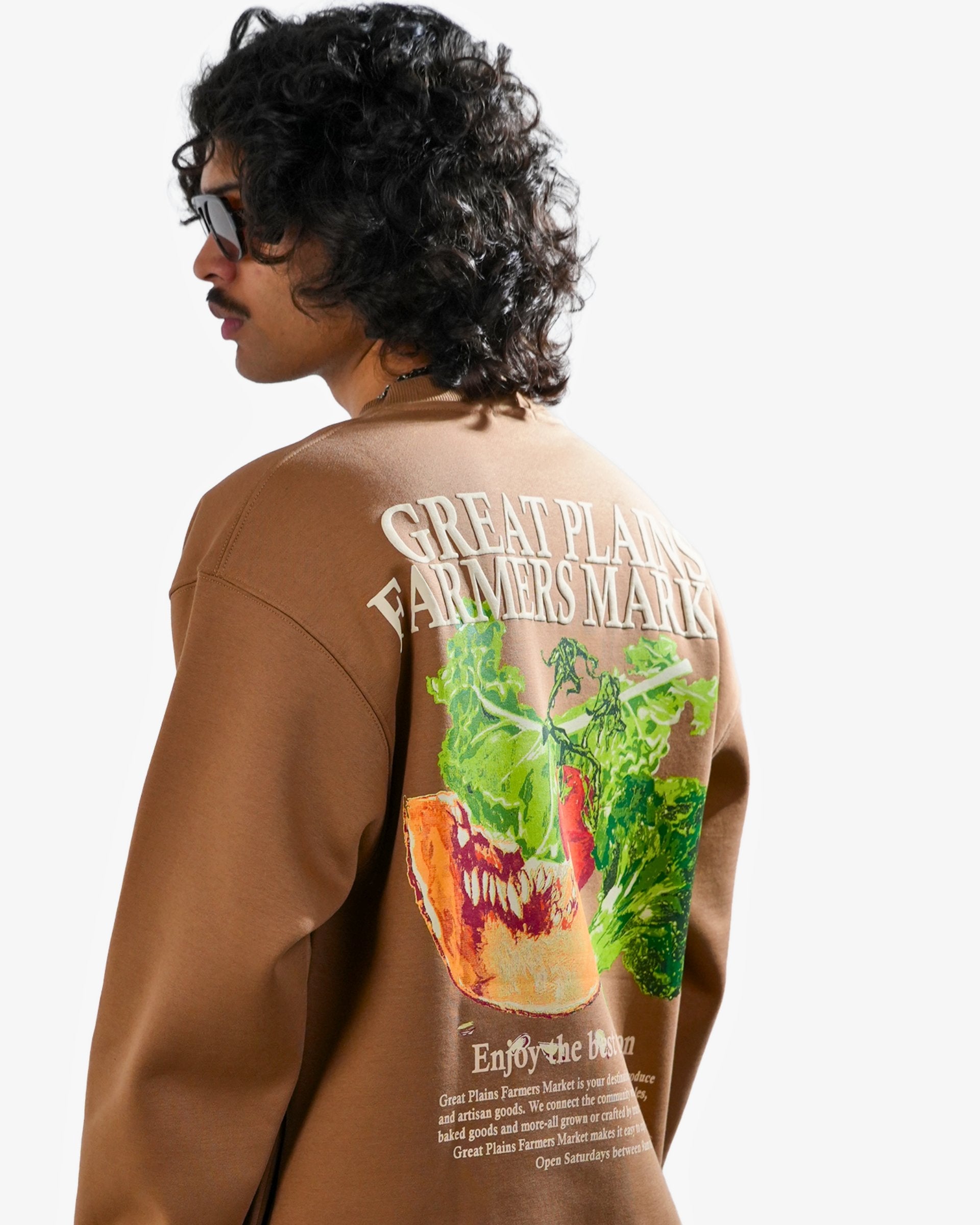 Farmer's Market - Tan Oversized Printed Sweatshirt