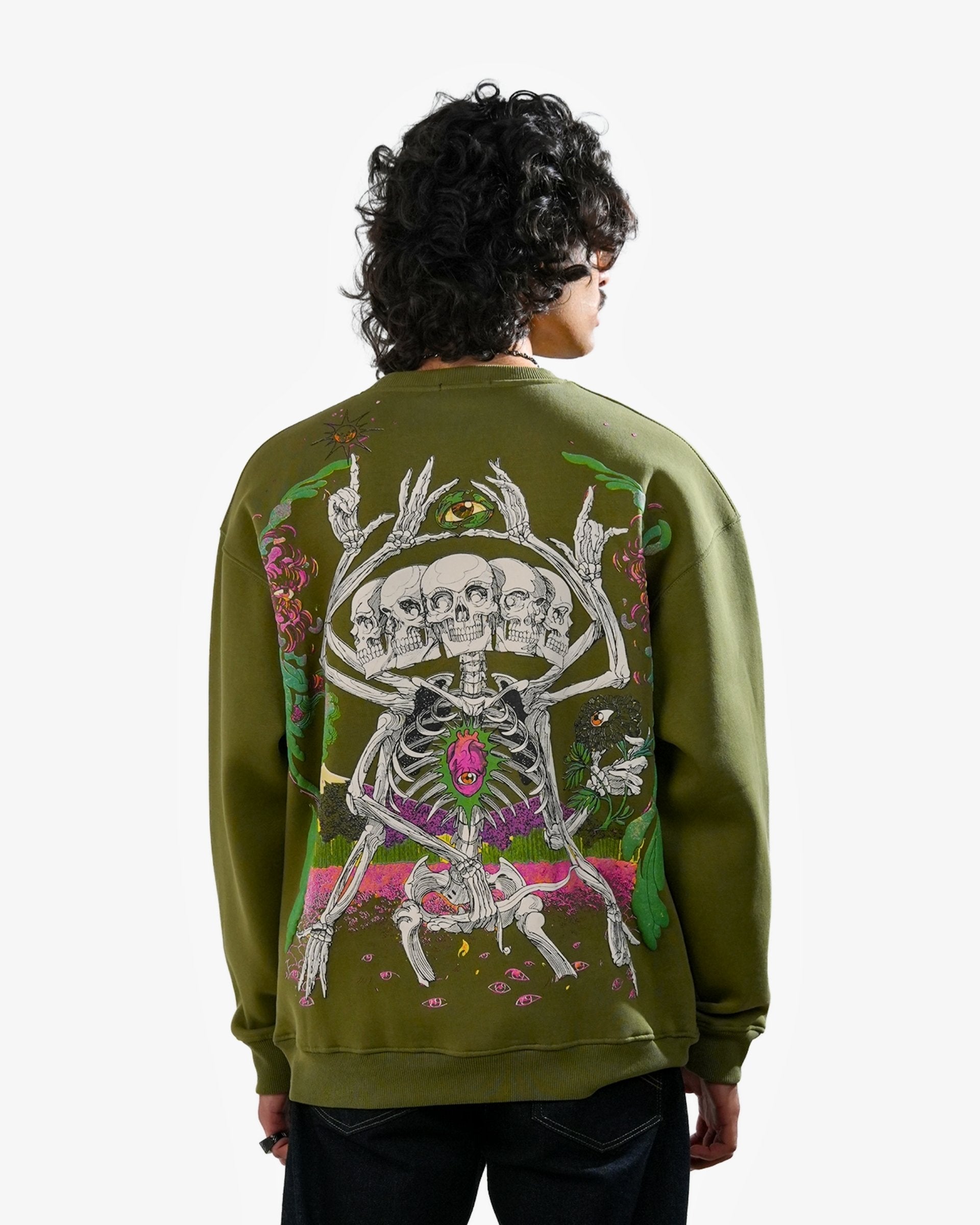 Diabolical - Olive Embroidered Oversized Sweatshirt