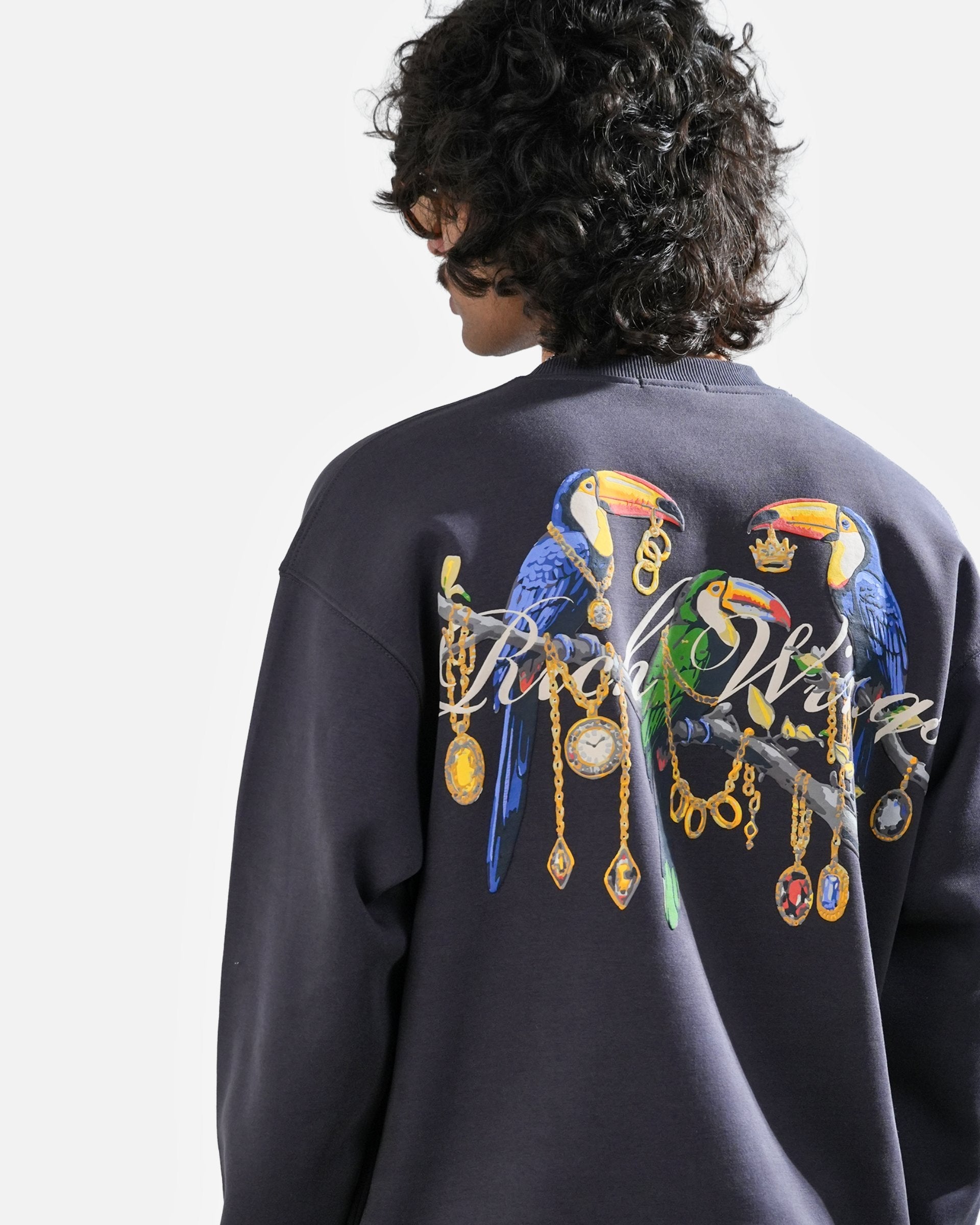 Rich Wings - Gray Oversized Printed Sweatshirt