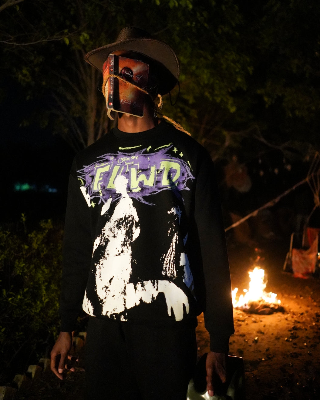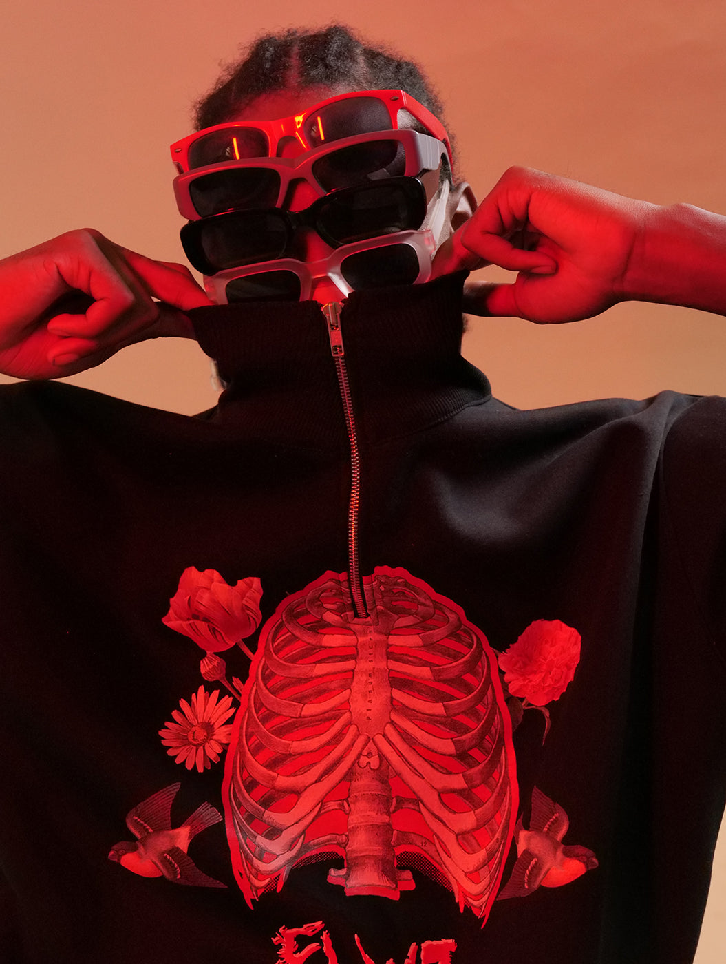 FLWD - Bone Bloom Black Quarter Zip Unisex Oversized Sweatshirt