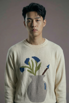 Designed like wearable minimal art, this premium cotton knit sweater features an in-built jacquard vase motif with subtle Vindof branding clean, calm and effortlessly luxurious.