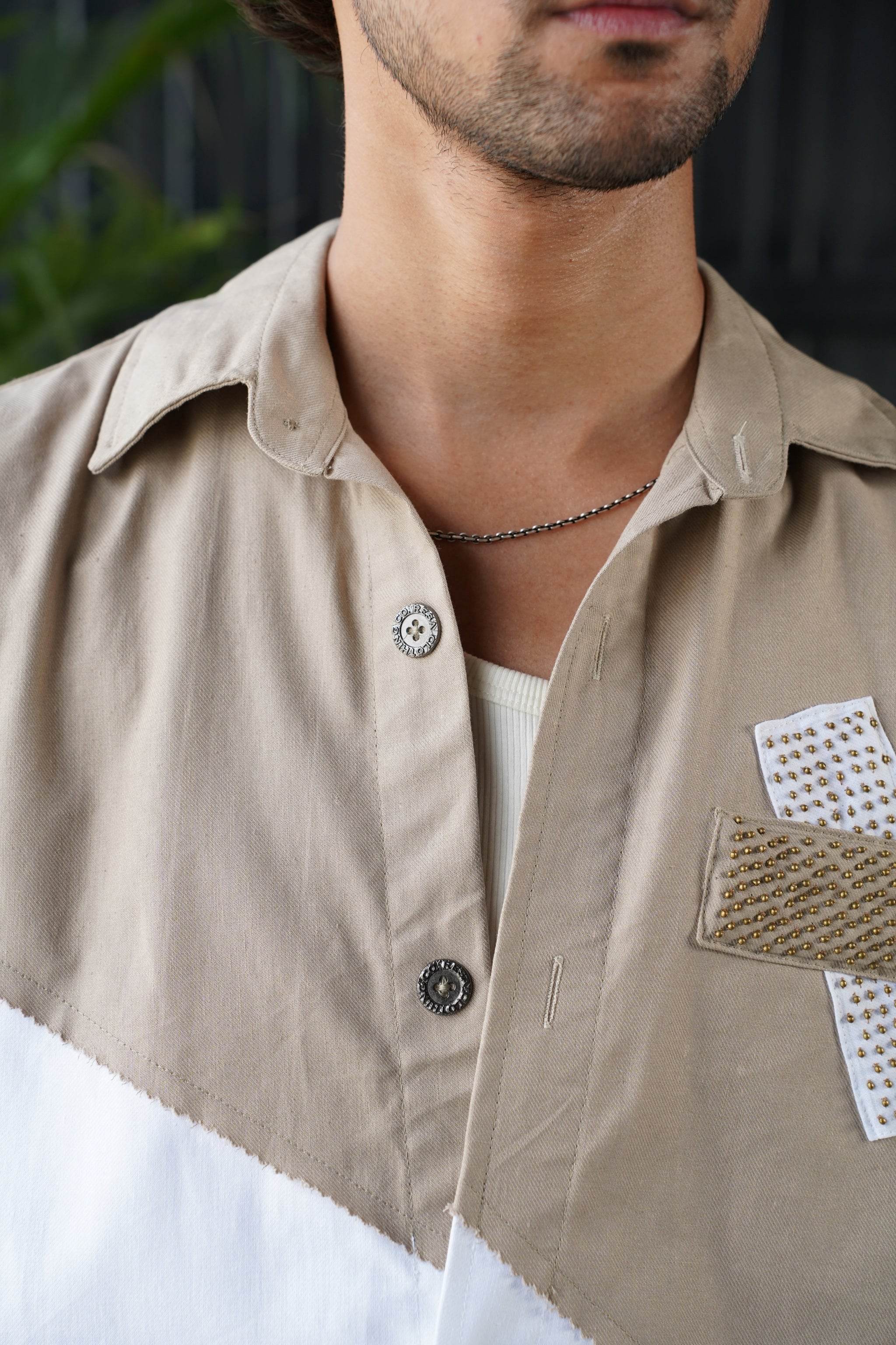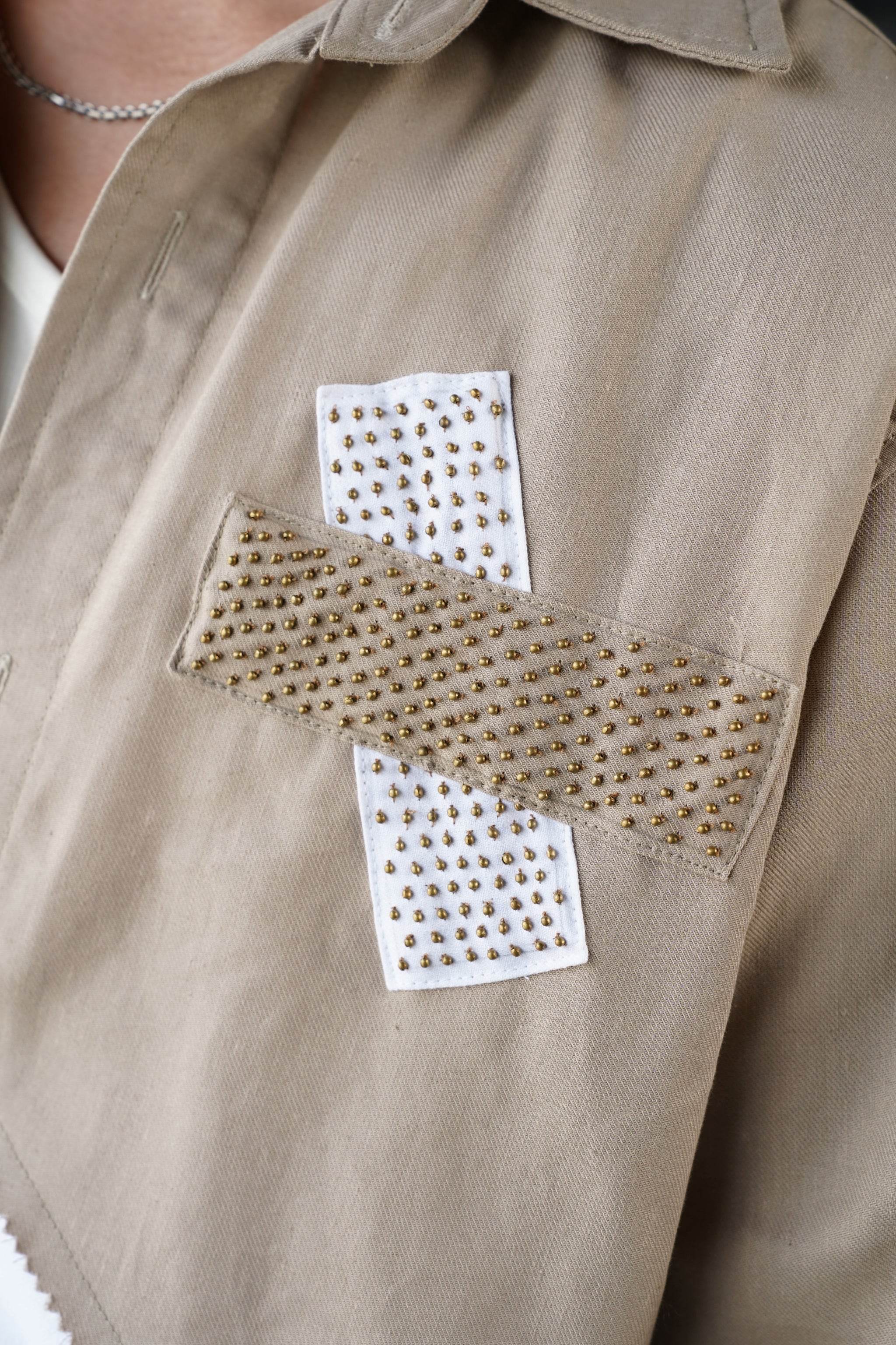 Design - 2 Fabric Patchwork and Hand Beading on Chest