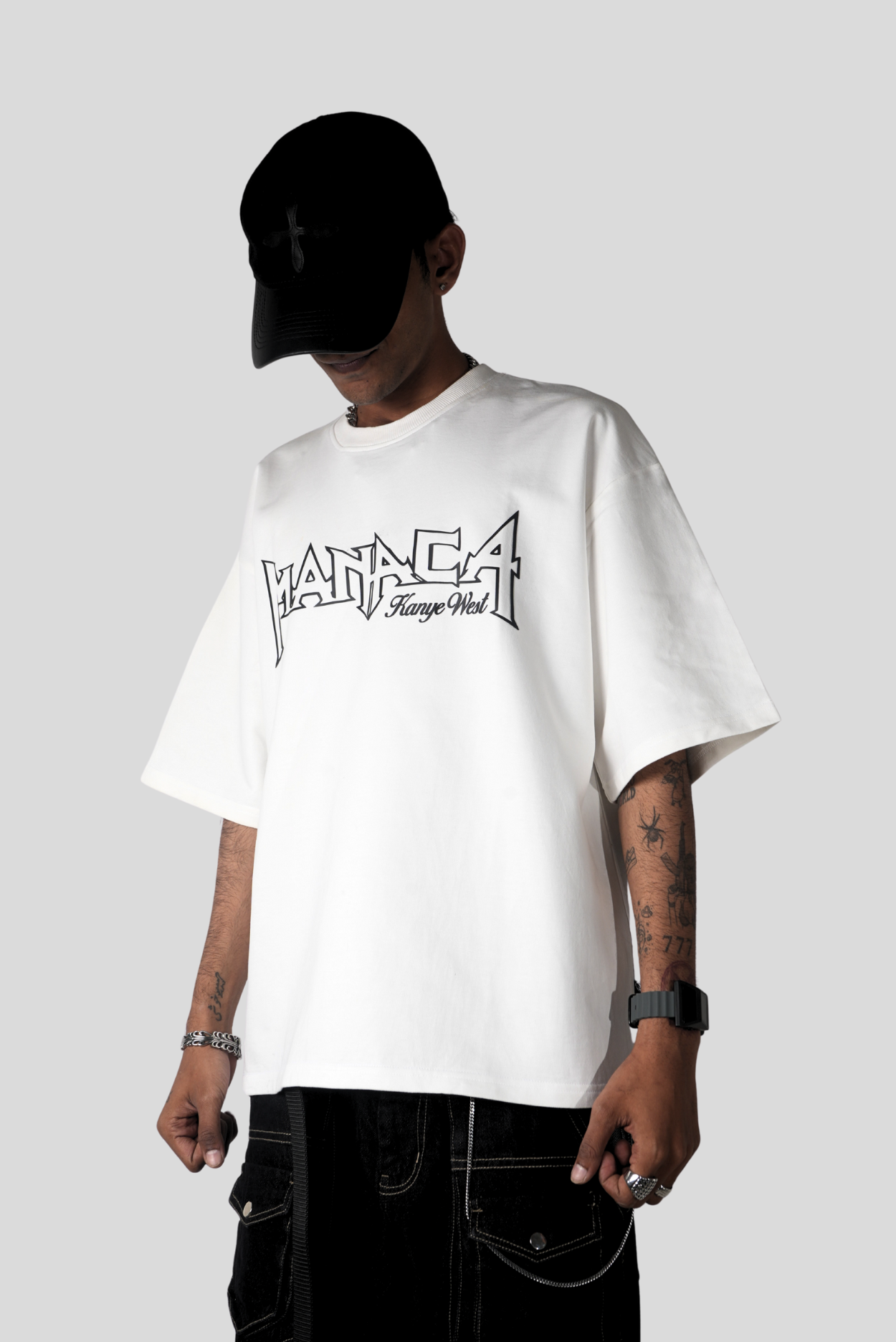 The ABSCOND tee is a heavy-hitting visual archive — raw, real, and rooted in cultural defiance. The front features a sharp MANACA x Kanye West logo, locking in minimalist rebellion. But flip it and the story unfolds: a grayscale collage of Ye and his children under a distressed “ABSCOND Forever” headline — a powerful nod to legacy, escape, and the chaos of freedom. Oversized and unapologetic, this tee ain’t here to blend in.