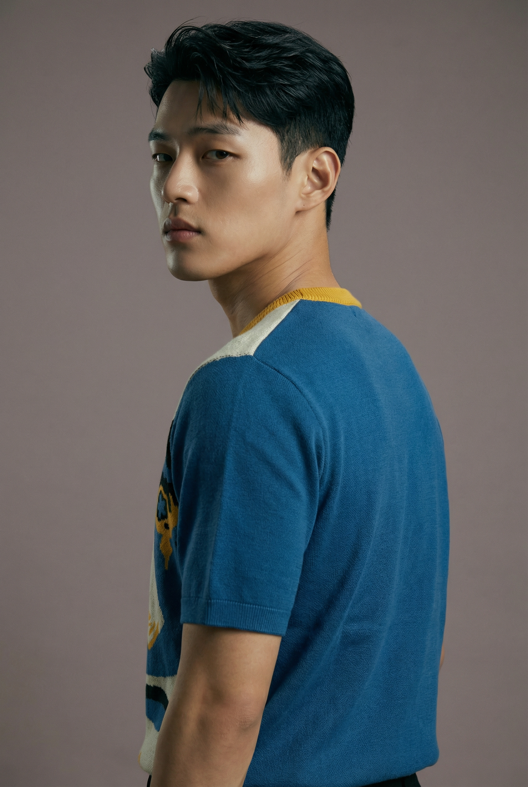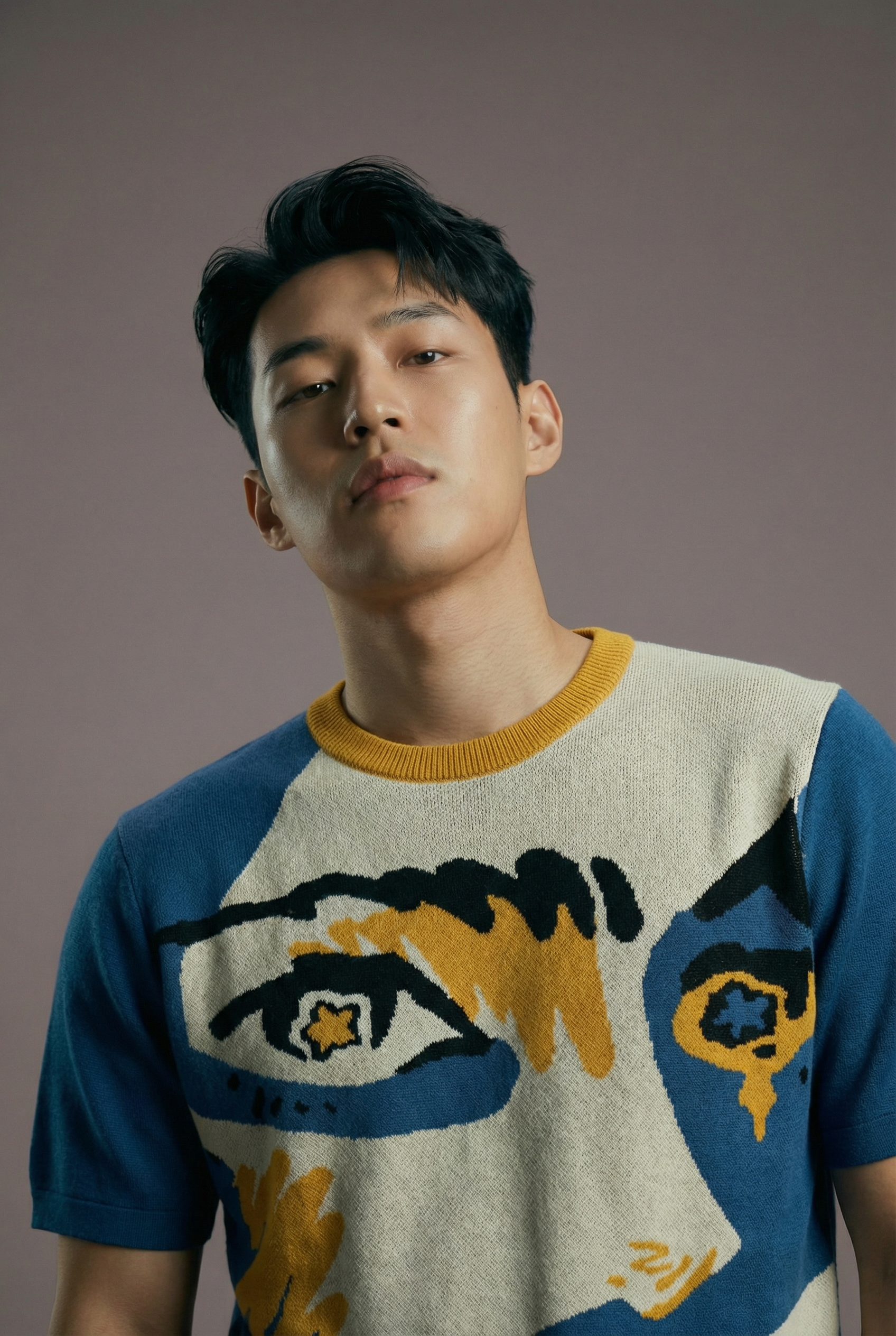 Knitted like wearable art, this statement round neck tee is crafted in pure cotton with an in-built jacquard face graphic that turns heads without trying too hard.