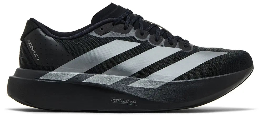 Engineered for elite performance, the adidas Adizero Evo SL in Black Iron Metallic combines lightweight design with responsive cushioning to enhance speed and agility. Its streamlined silhouette offers a secure fit, while durable materials ensure lasting support during intense training or races. Ideal for athletes focused on maximizing efficiency and comfort, this shoe delivers precision and power in every stride.