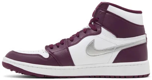 Revolutionize your golf game with the Air Jordan 1 High Golf 'Bordeaux'. Featuring the classic silhouette of the iconic Air Jordan 1, this golf shoe is designed for optimal comfort, traction, and style on the course. With its luxurious Bordeaux colorway and premium materials, you'll stand out on the green while performing at your best.