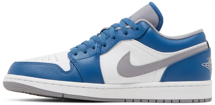 The Air Jordan 1 Low "True Blue" combines classic design with modern comfort, featuring premium leather in iconic white, black, and true blue hues. Its low-cut silhouette ensures mobility and versatility, while the cushioned midsole delivers responsive support for all-day wear. This model pays homage to the heritage of the Air Jordan line, making it an essential choice for collectors and sneaker enthusiasts seeking timeless style and reliable performance.