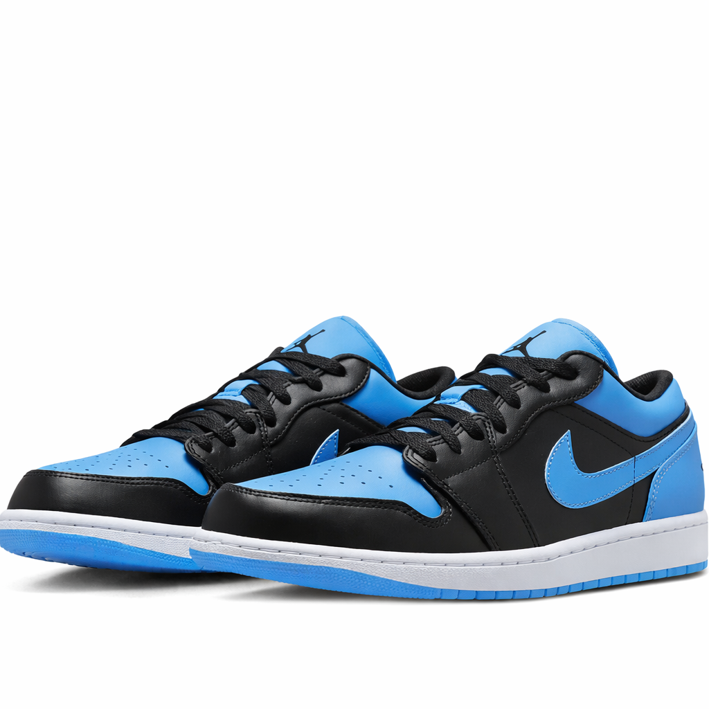 The Air Jordan 1 Low UNC Black combines iconic silhouette with understated elegance. Featuring the classic low-top design that revolutionized basketball footwear, this sneaker pairs crisp black leather with signature Jordan branding. The UNC colorway nods to basketball heritage while maintaining versatile styling for both court and casual wear. Premium construction ensures durability, while the responsive sole provides comfort for all-day wear. A timeless addition to any sneaker collection.