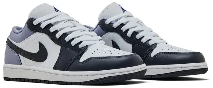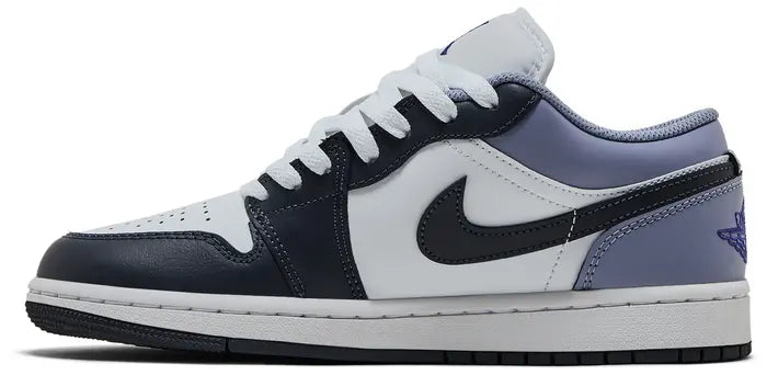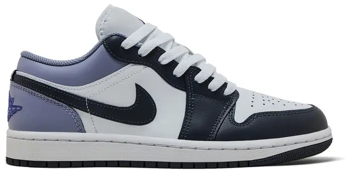 The Air Jordan 1 Low 'White Indigo Haze' offers a refined update to the iconic silhouette with its pristine white leather upper complemented by subtle indigo accents. Designed for durability and all-day comfort, it features a cushioned midsole and a durable rubber outsole that provides excellent grip. This model delivers a sleek, low-profile fit that suits both performance and lifestyle wear, reflecting the timeless style and quality craftsmanship synonymous with the Jordan brand.