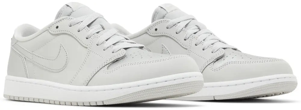 The Air Jordan 1 Retro Low OG 'Metallic Silver' blends iconic design with a sleek, modern touch. Featuring premium leather in crisp white complemented by metallic silver accents, this silhouette offers both style and durability. Its low-cut profile ensures flexibility and comfort, while the classic Air-Sole unit provides reliable cushioning. Perfect for collectors and enthusiasts, this edition maintains the heritage of the original AJ1 with a refined contemporary finish.