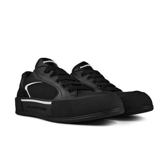 The Alexander McQueen Deck Sneaker in black exemplifies understated luxury through meticulous attention to detail. This design merges nautical-inspired elements with contemporary minimalism, delivering a versatile silhouette that transcends seasonal trends. The monochromatic black palette ensures effortless integration into curated wardrobes, while premium materials and precision construction reflect McQueen's uncompromising standards. The refined proportions and subtle design accents distinguish this sneaker from mass-market alternatives. Ideal for those seeking sophisticated footwear that commands presence through restraint rather than ostentation—a refined choice for the discerning collector.