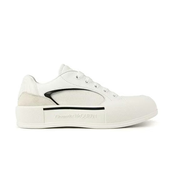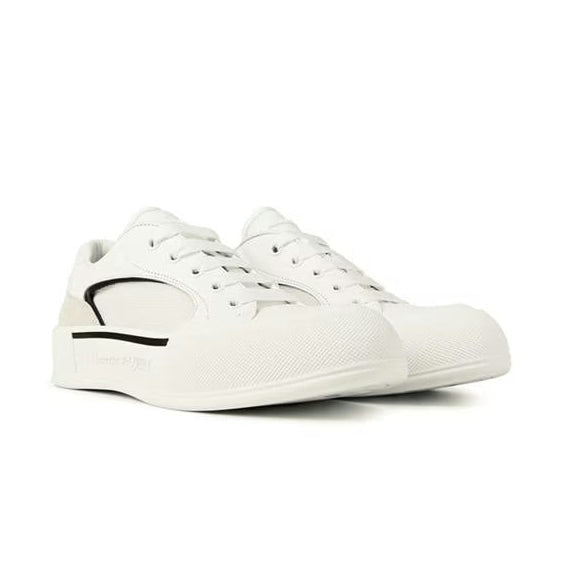 The Alexander McQueen Deck Sneaker in white exemplifies understated luxury through meticulous attention to detail. This design merges nautical-inspired elements with contemporary minimalism, delivering a versatile silhouette that transcends seasonal trends. The monochromatic black palette ensures effortless integration into curated wardrobes, while premium materials and precision construction reflect McQueen's uncompromising standards. The refined proportions and subtle design accents distinguish this sneaker from mass-market alternatives. Ideal for those seeking sophisticated footwear that commands presence through restraint rather than ostentation—a refined choice for the discerning collector.