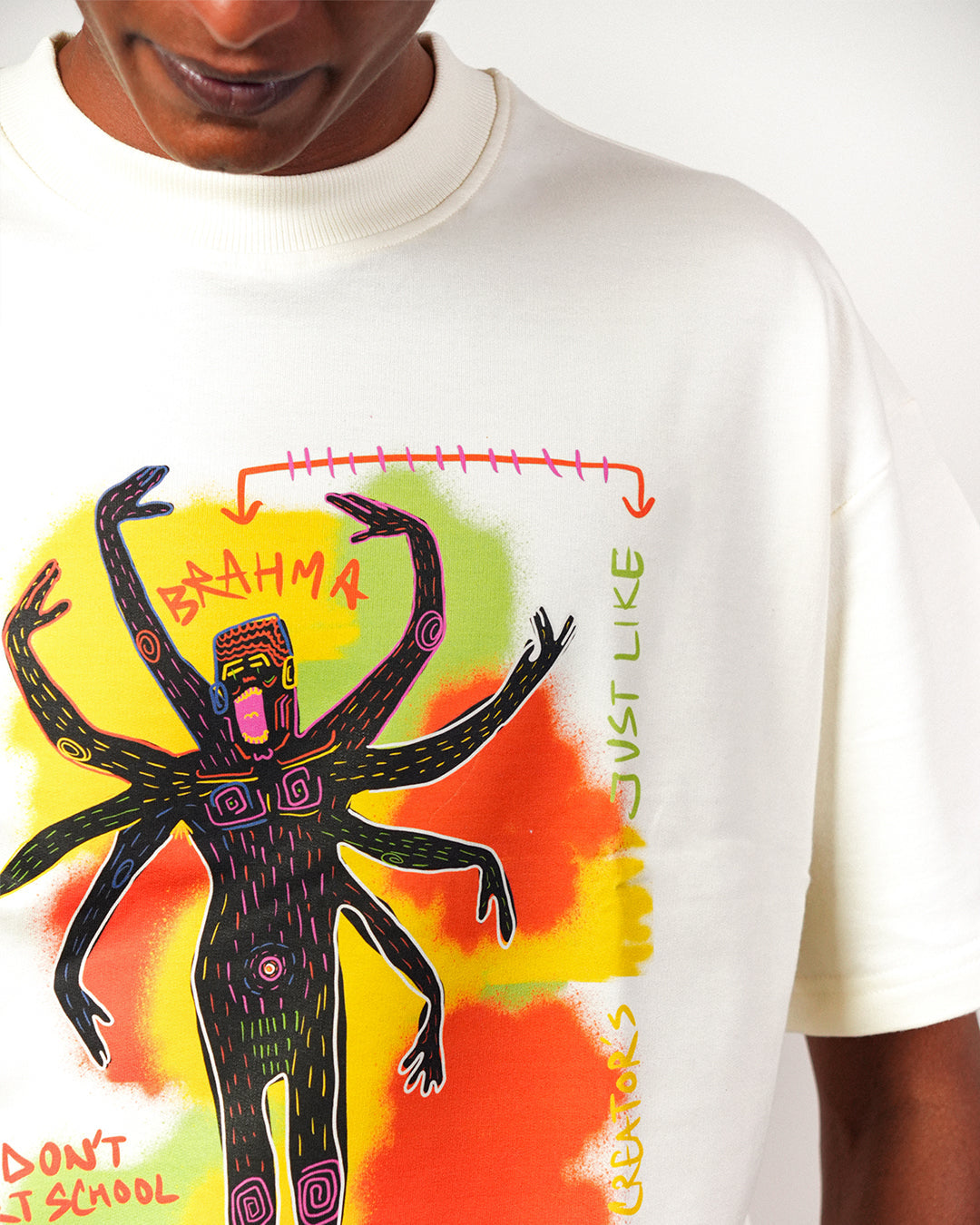 But it's not just about the fabric; it's about the statement it carries. The front of the shirt features a captivating artwork of an otherworldly alien or Extraterrestrial being, intricately designed to express the inner workings of an artist's mind. It's not just a graphic; it's a representation of how an artist perceives themselves and their craft, inviting you to delve into the depths of creativity.