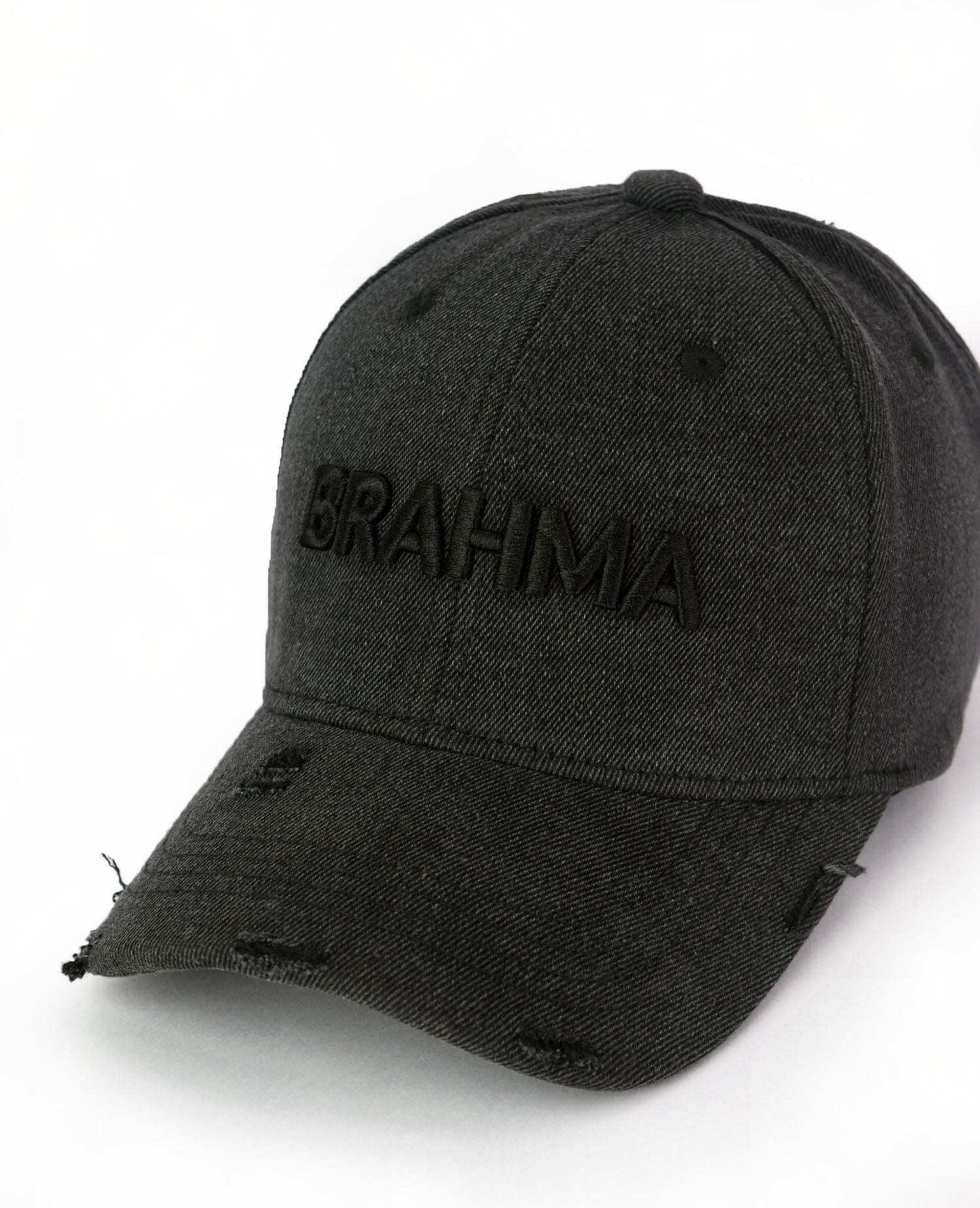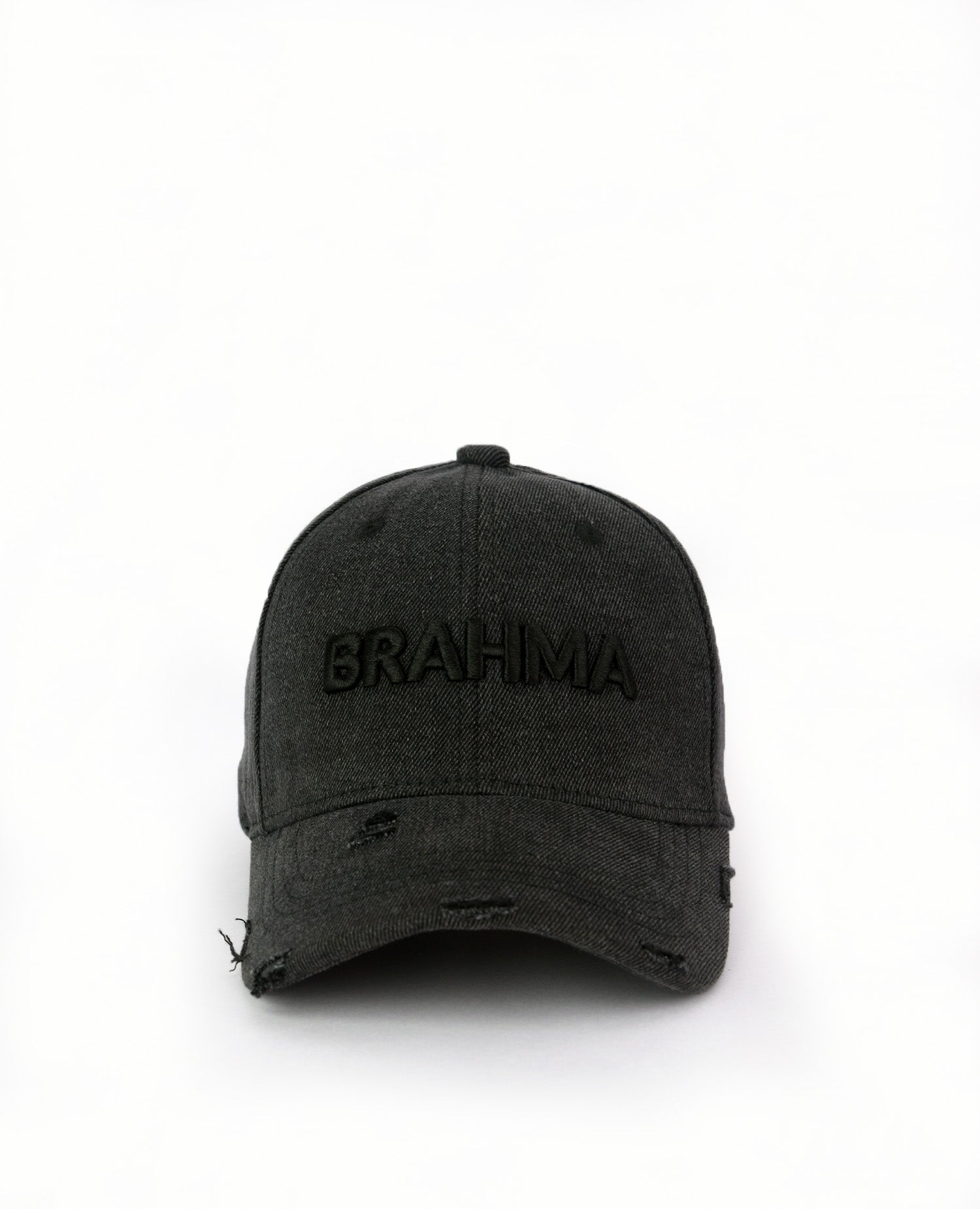 This black denim cap is the perfect blend of minimalism and attitude. Crafted from high-quality denim, it features subtle distressing for a worn-in, edgy feel. The tonal 3D embroidered "Brahma" artwork on the front adds a bold yet understated touch, creating a sleek monochrome aesthetic. A versatile staple designed to elevate any look effortlessly.