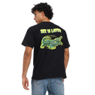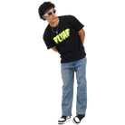 Loose-fittining t-shirt in black with a round neckline and short sleeves.Puff print on the front and back.