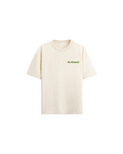 The amour tee in buttercream mid weight cotton with embroidered the khwaab script at the front and feathered amour graphic at the back. Relaxed fit