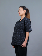 Ancient - Black Oversized Printed Women Cuban Collared Shirt