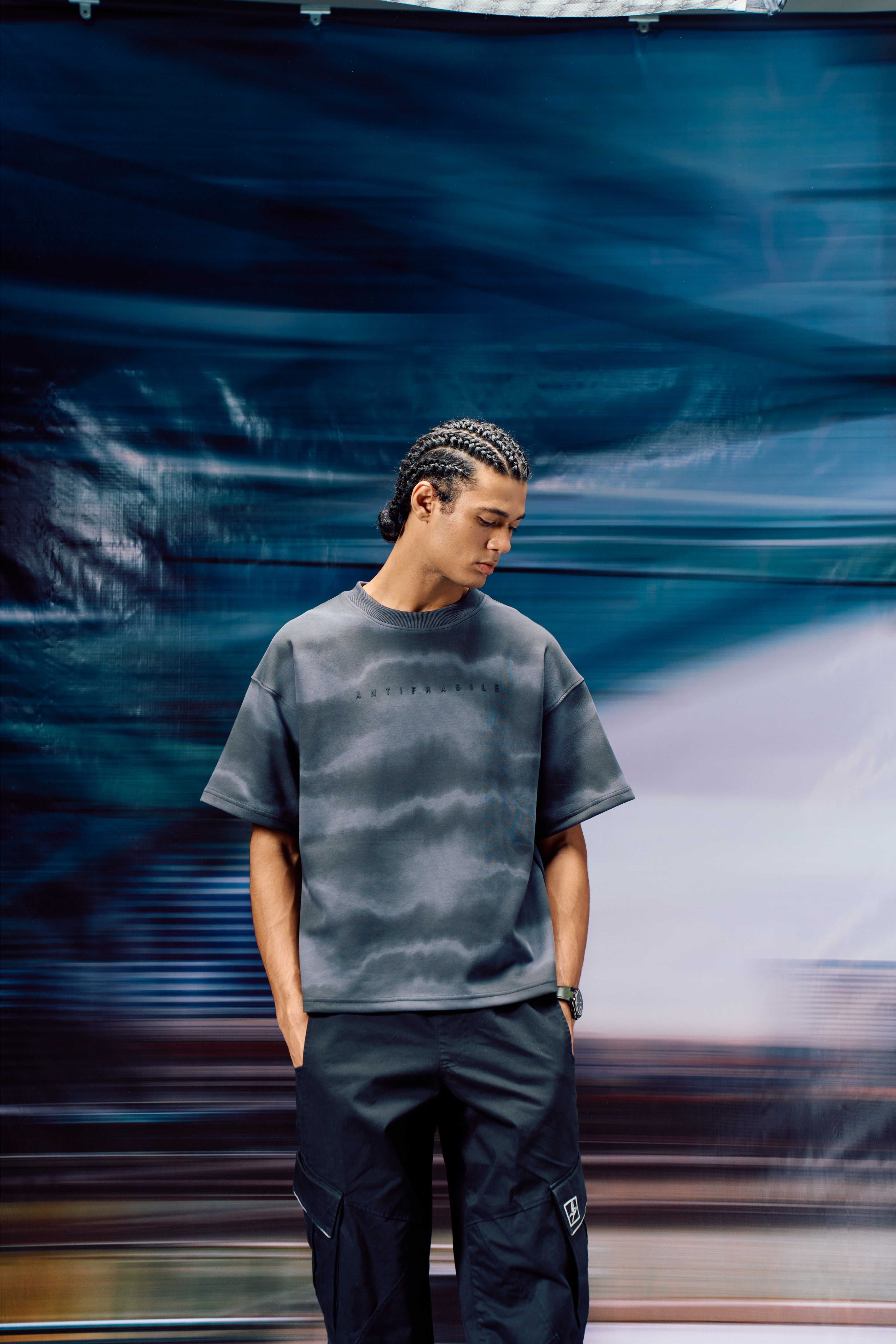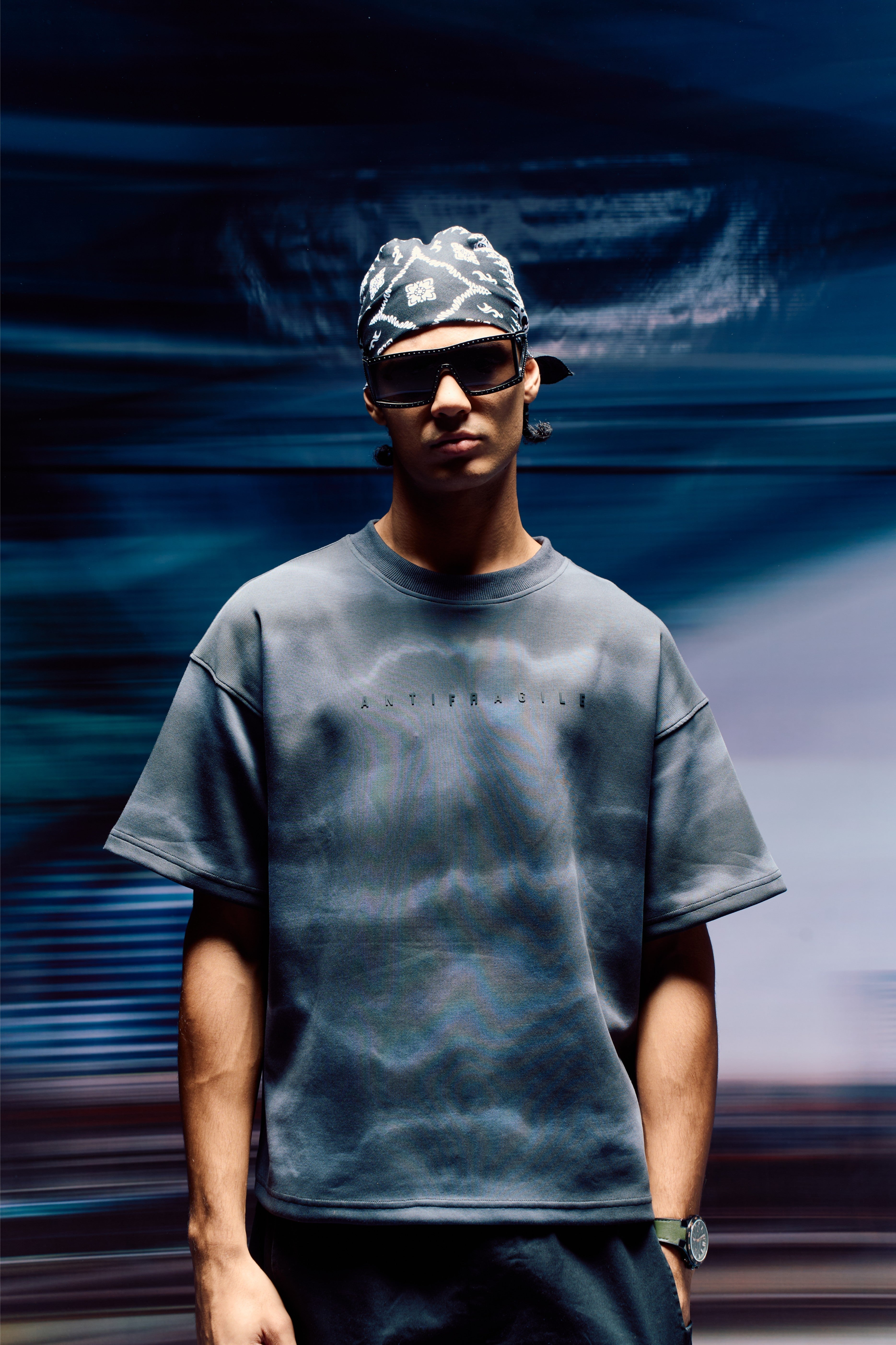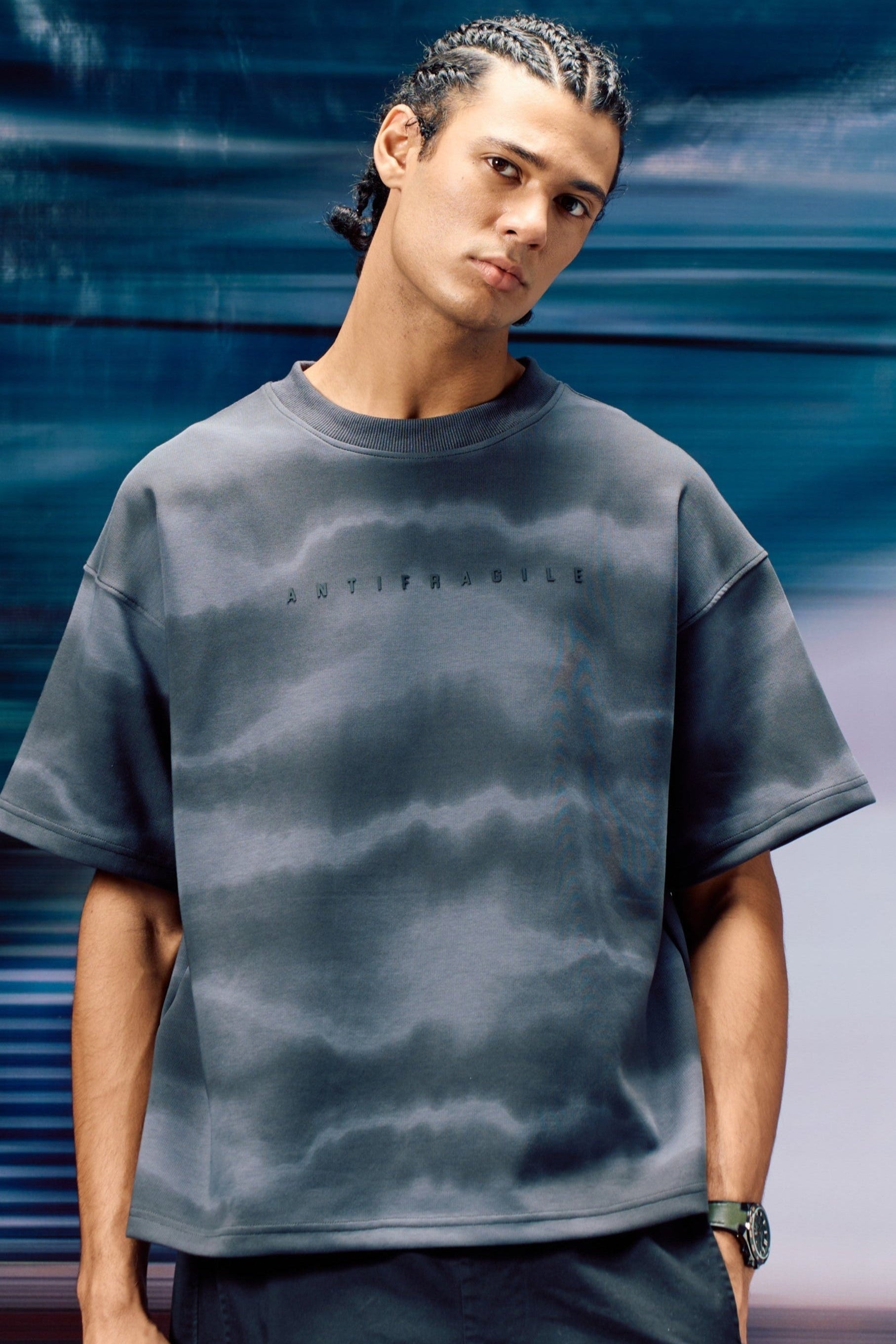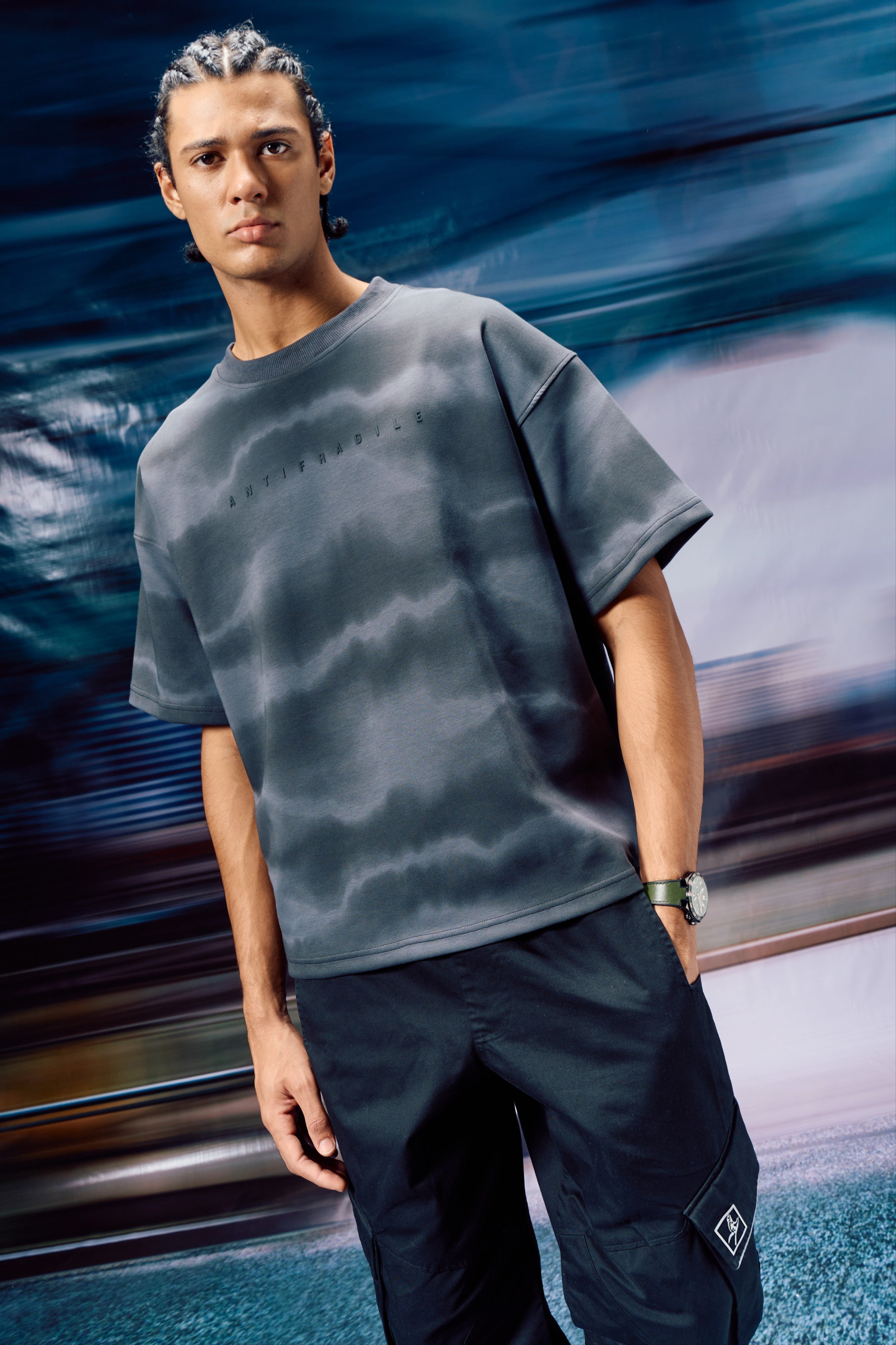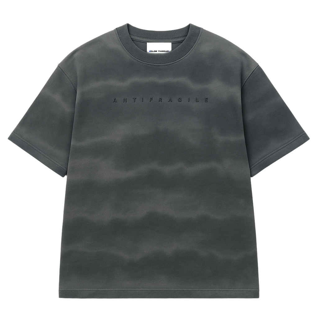 A tie-dyed fabric in cotton and micro scuba finish, the tshirt comes in multi shades of grey. The shirt is every guys dream. The quote comes in HD in the front - ANTIFRAGILE and a hidden affirmation quote printed inside the seams for you to find