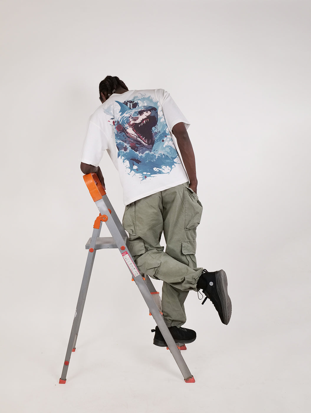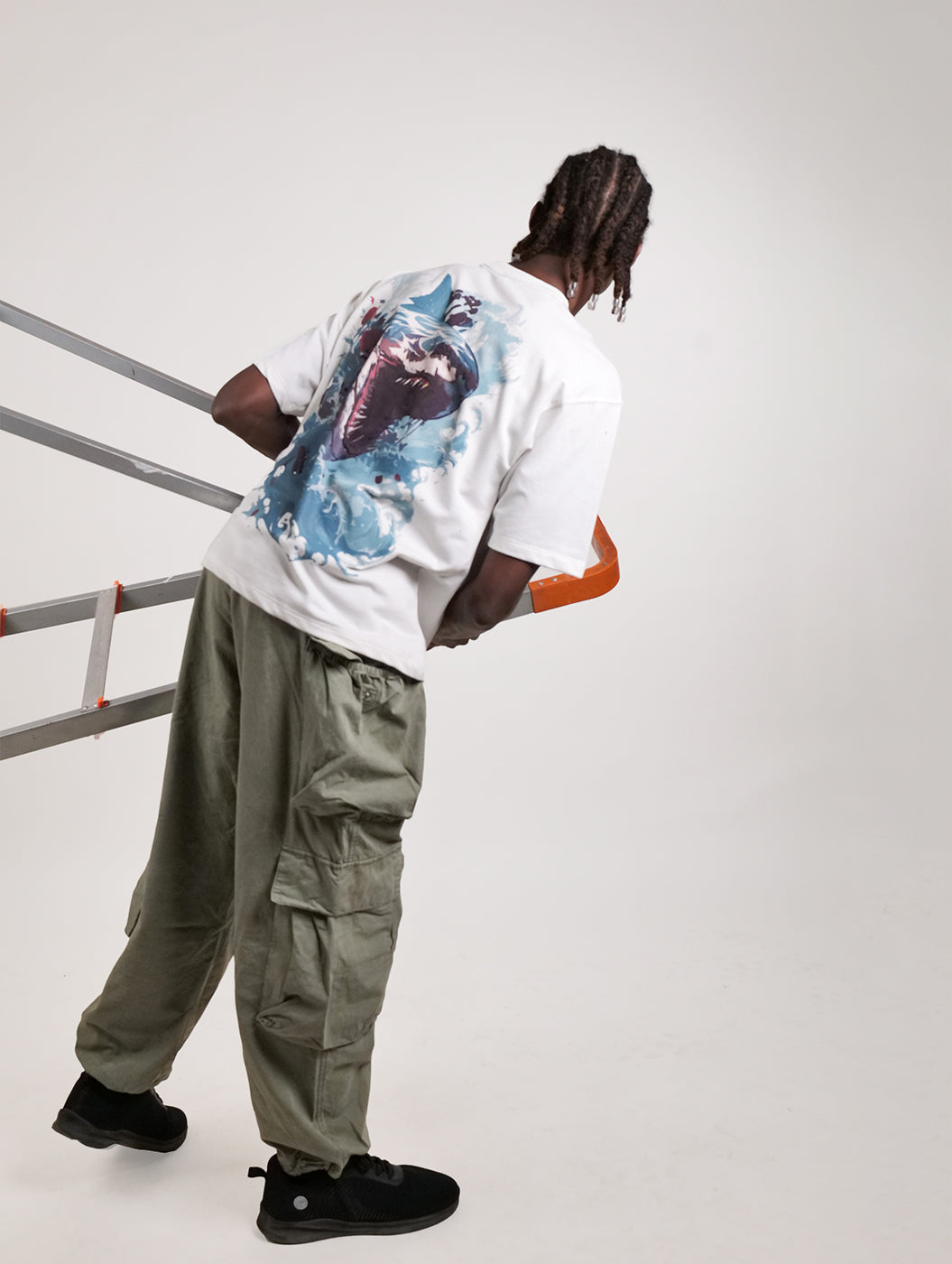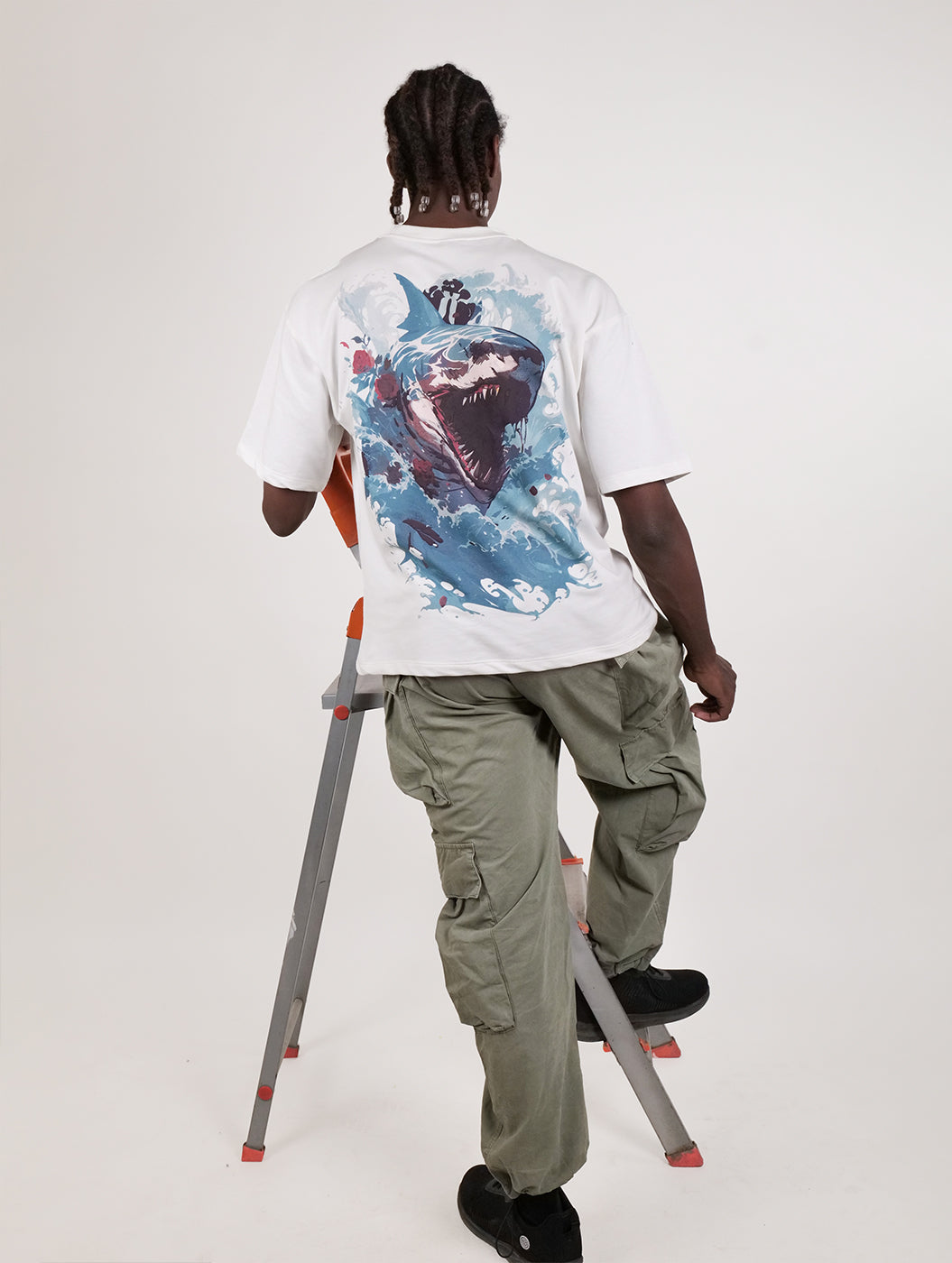 Apex - White Graphic Drop Shoulder Men Oversized T-Shirt