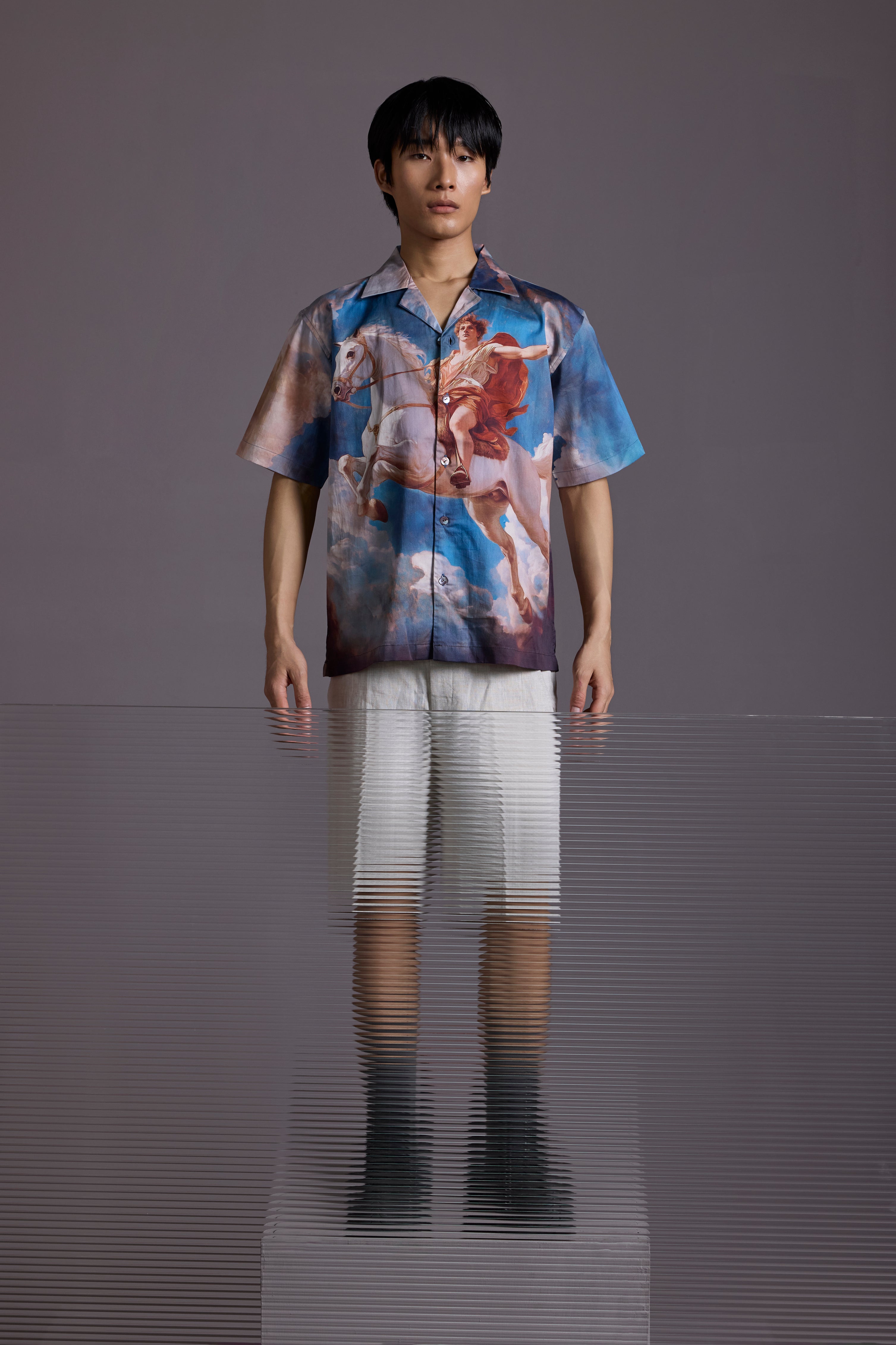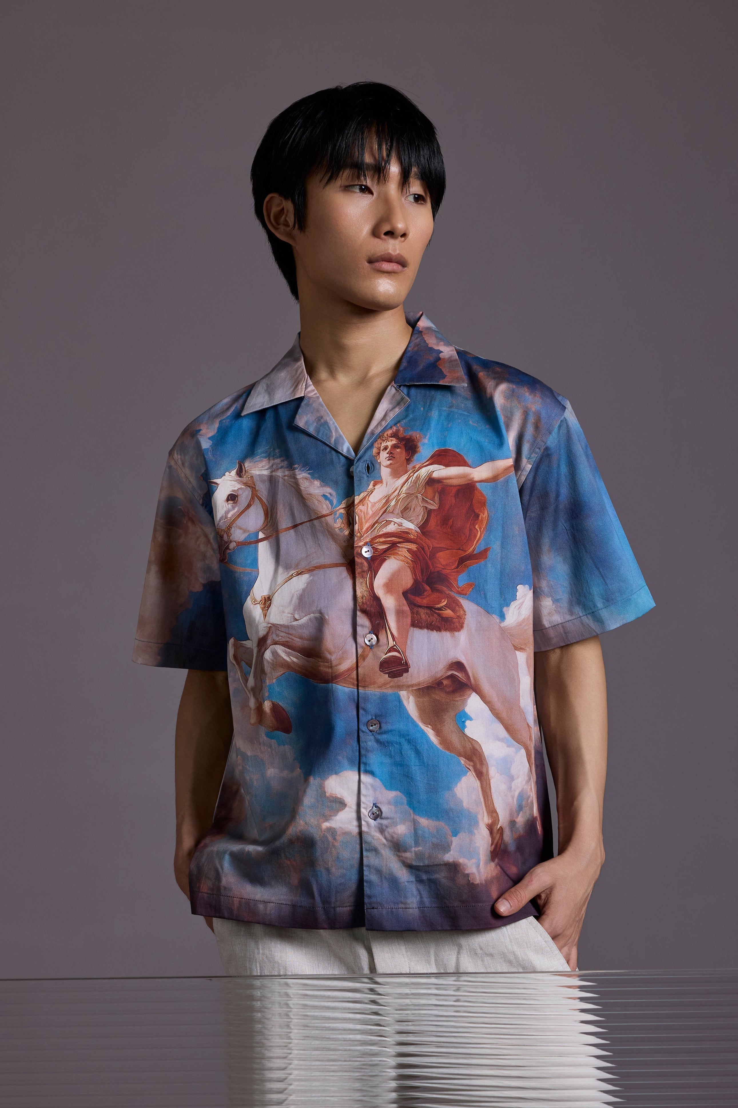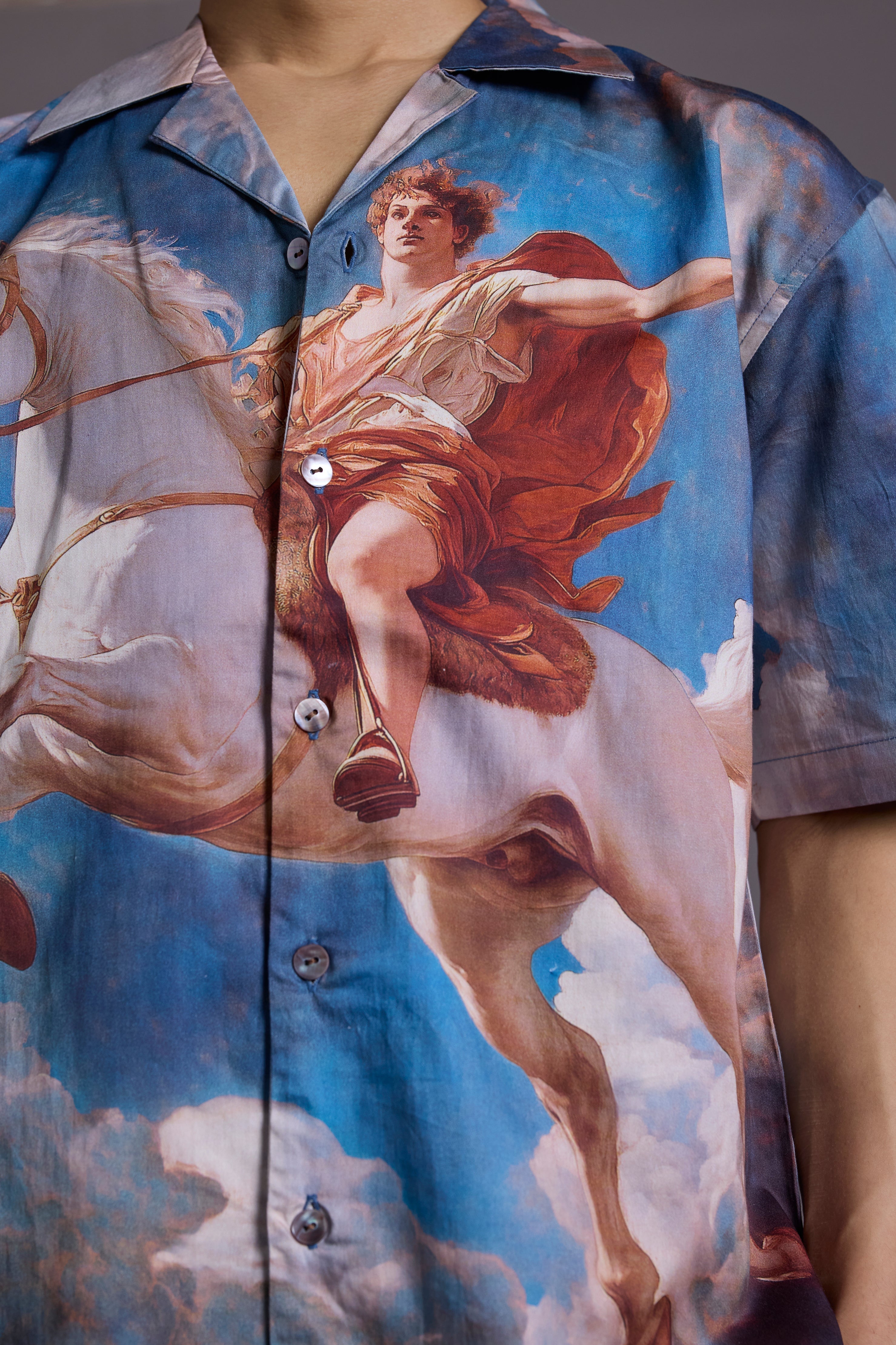 Printed on a breezy 100% cotton fabric with the softest weave, this camp collar shirt is designed for those who dare to be iconic.