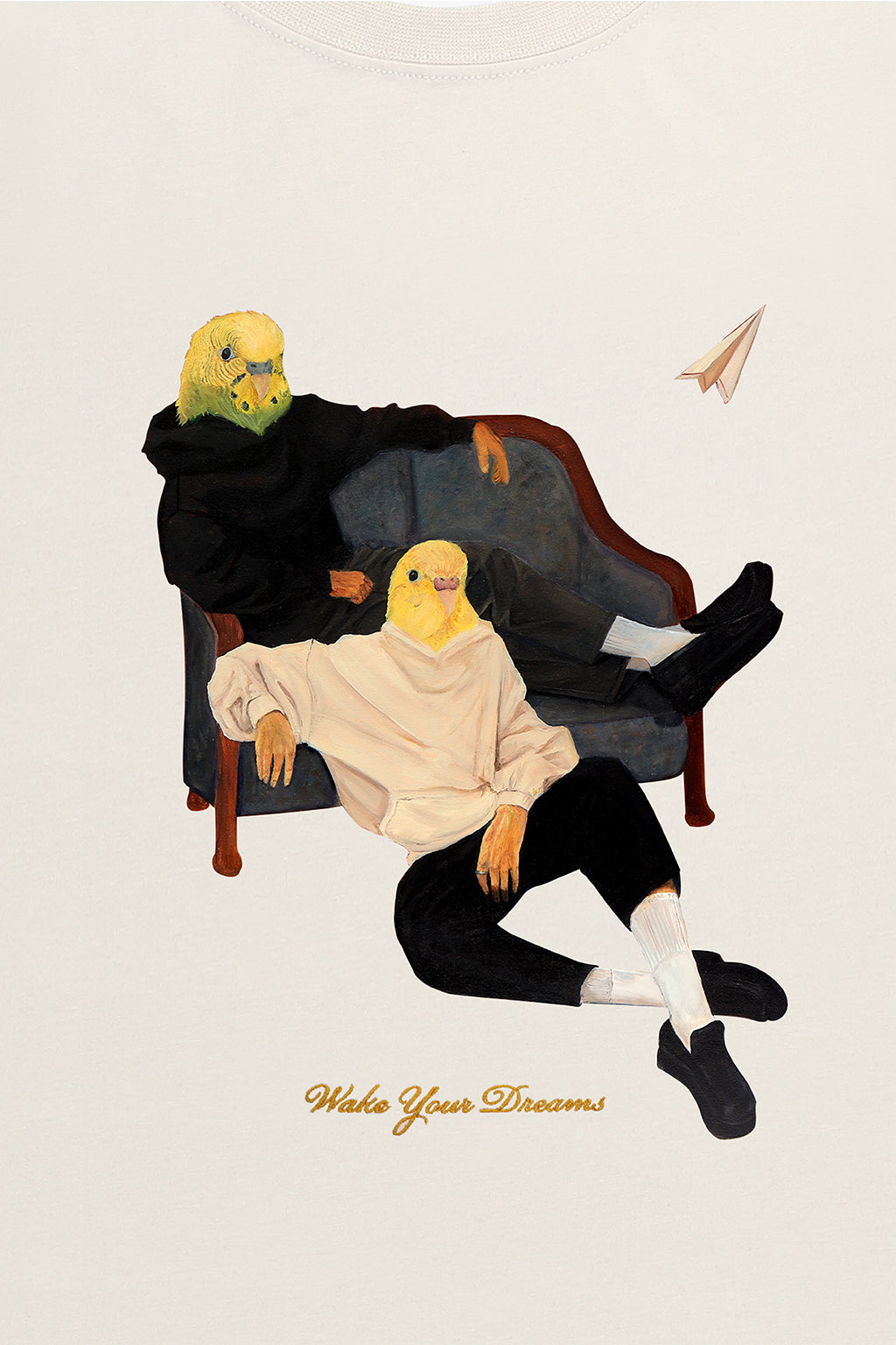 The second serving of WYD Artist T-shirts is crafted from 250 GSM 100% Combed Cotton with embroidered details. In an oversized fit, the t-shirt features Birdbrained, an artwork conceived by Wake Your Dream.