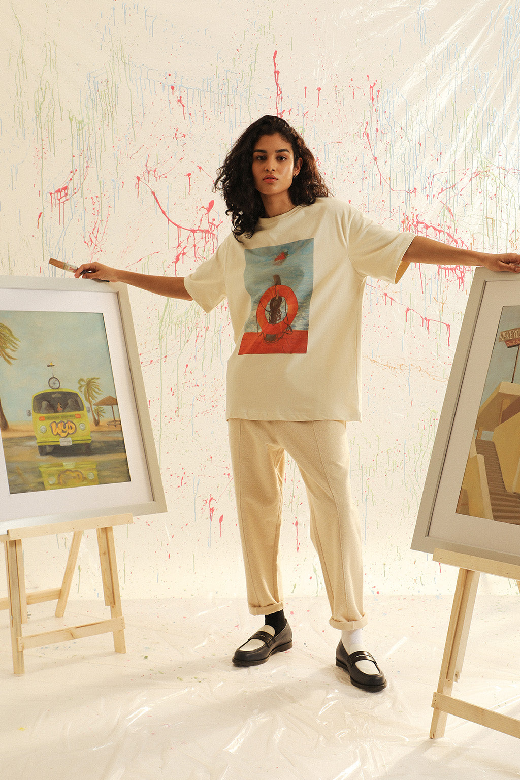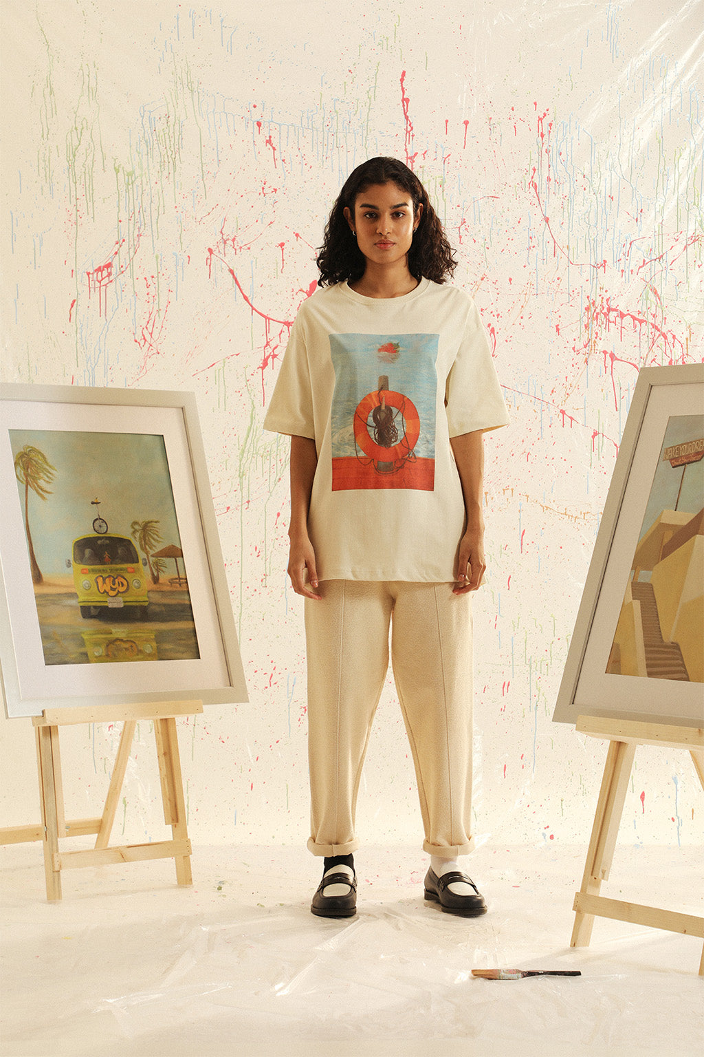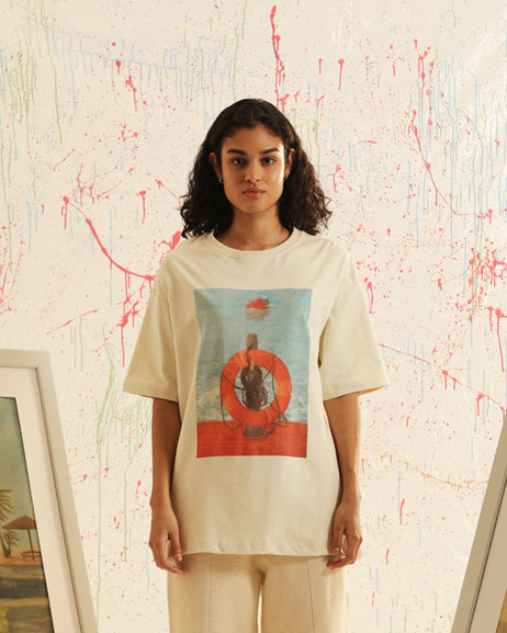 Introducing the WYD Artist T-shirts in oversized fit. Crafted from 250 GSM 100% Combed Cotton, the t-shirt features God Save the Berry, a painting by Guruvinayak Singh made exclusively for Wake Your Dreams.