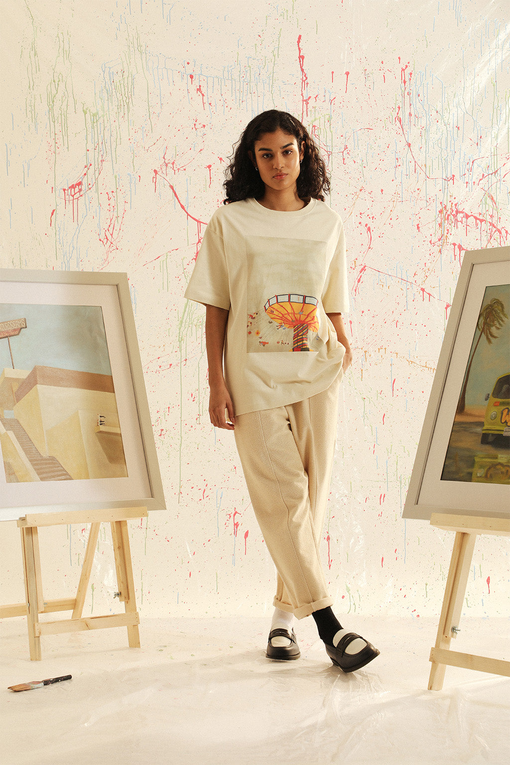Introducing the WYD Artist T-shirts in oversized fit. Crafted from 250 GSM 100% Combed Cotton, the t-shirt features Paradise Circus, a painting by Guruvinayak Singh made exclusively for Wake Your Dream.