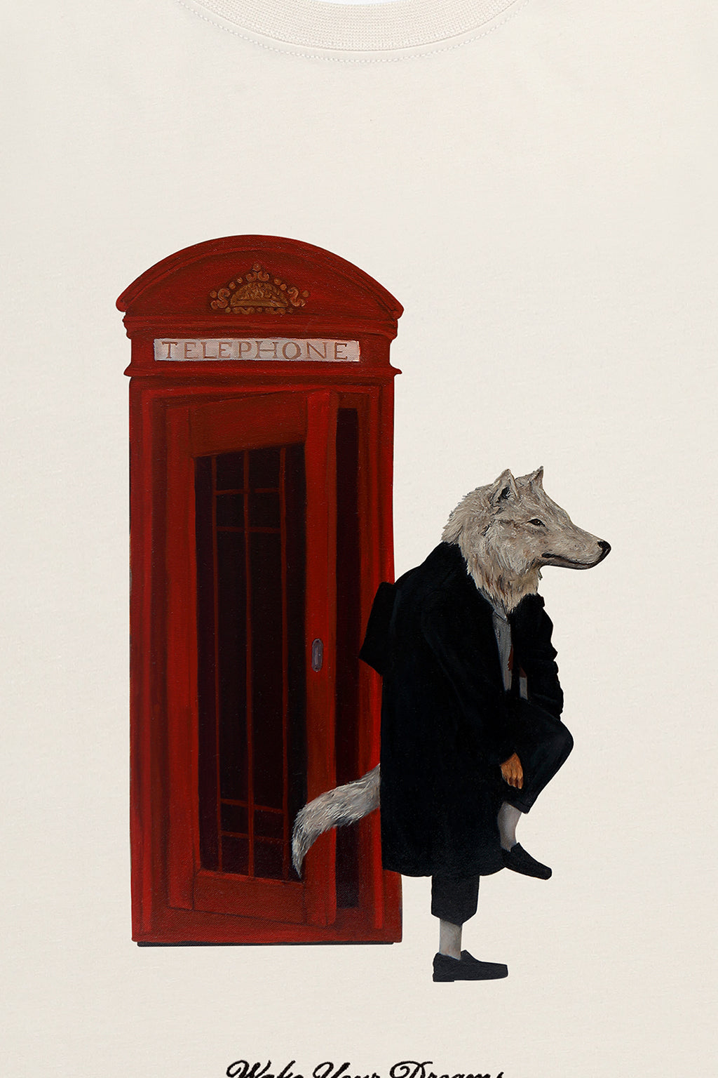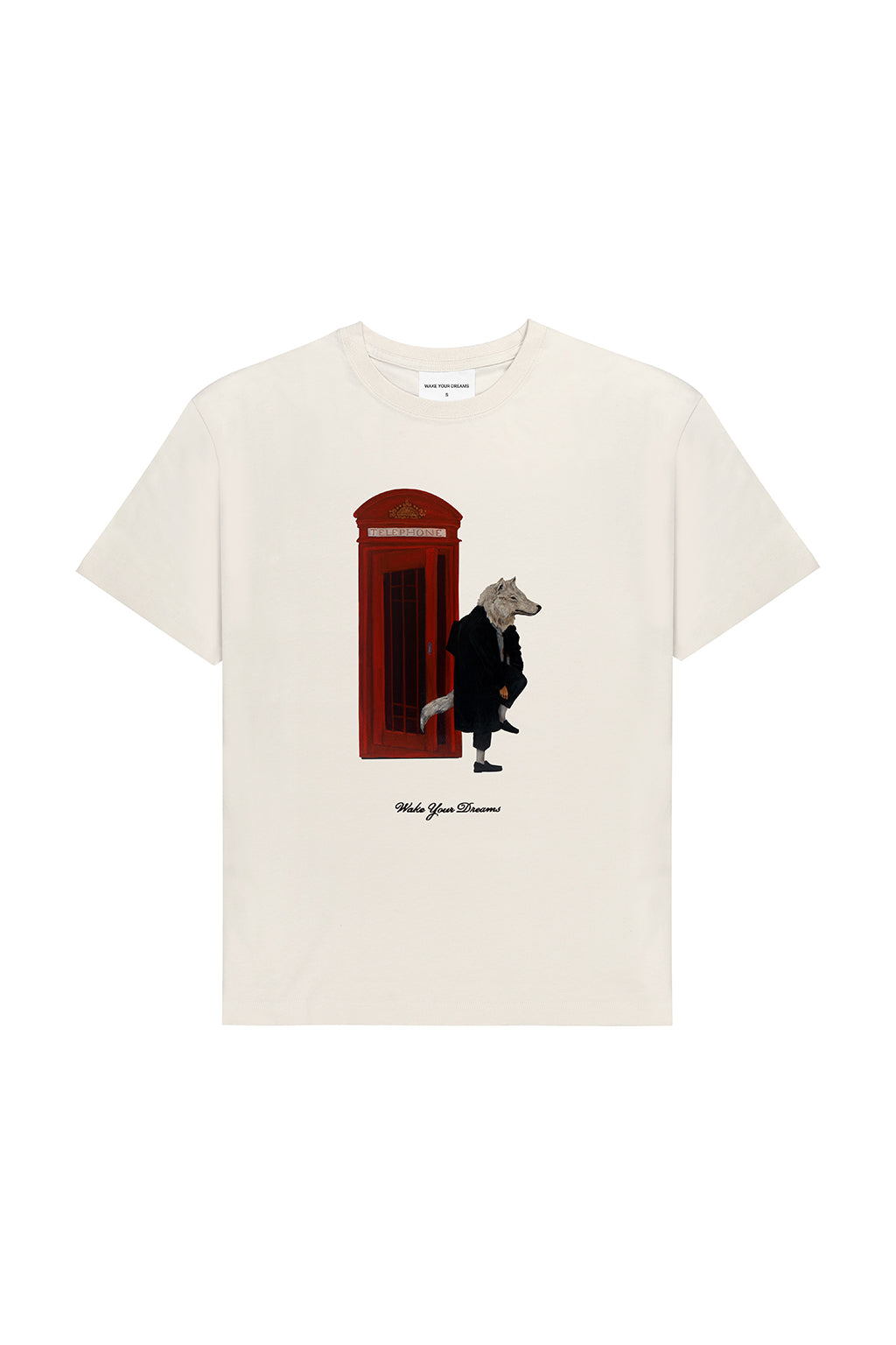 The second serving of WYD Artist T-shirts is crafted from 250 GSM 100% Combed Cotton with embroidered details. In an oversized fit, the t-shirt features Wolves and Woofs, an artwork conceived by Wake Your Dream.