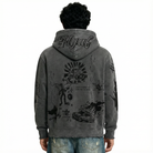 The Ashes Anthem Hoodie in dark charcoal wash, cotton fleece titan, cloaked in a gritty, faded finish that screams defiance.