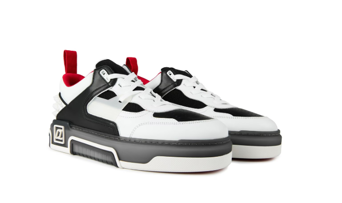Meet the Christian Louboutin Astroloubi Leather Sneakers, exuding a bold hip-hop, 90s street-style inspired silhouette. Complete with the CL varsity monogram on the side and signature Maison Christian Louboutin spikes at the rear, boasting an iconic signature. From weekend outings to social gatherings, these low-top sneakers are the perfect choice.