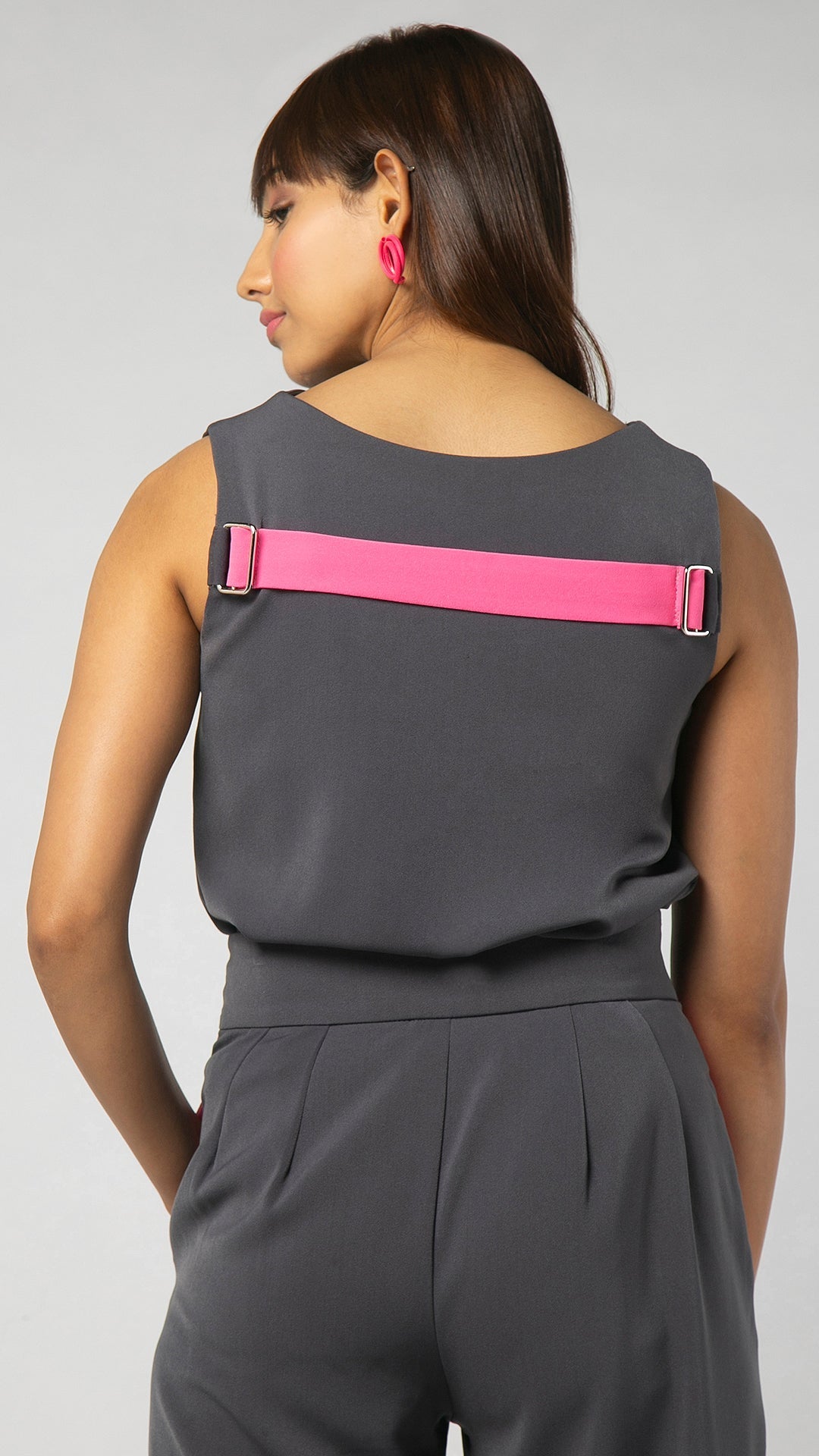 - Contrasting strap on the back