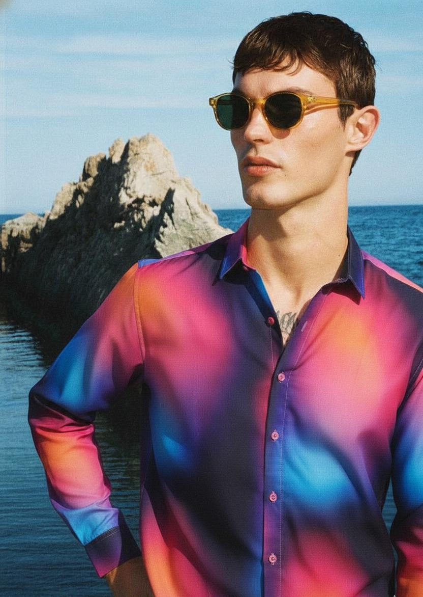 With its timeless silhouette and subtle Aurora Dust tone, this shirt is your go-to for versatile styling—whether you’re dressing up for an evening out or keeping it relaxed and effortless.