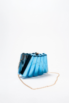 The Azure Prism Clutch crashes into the scene with a bold, futuristic edge. Its electric-blue mirrored surface and angular prism folds make it an instant statement piece—crafted for those who bring streetwear into nightlife and demand attention with every step. Lightweight, fierce, and untamed, this clutch is built for the new wave of rebels.