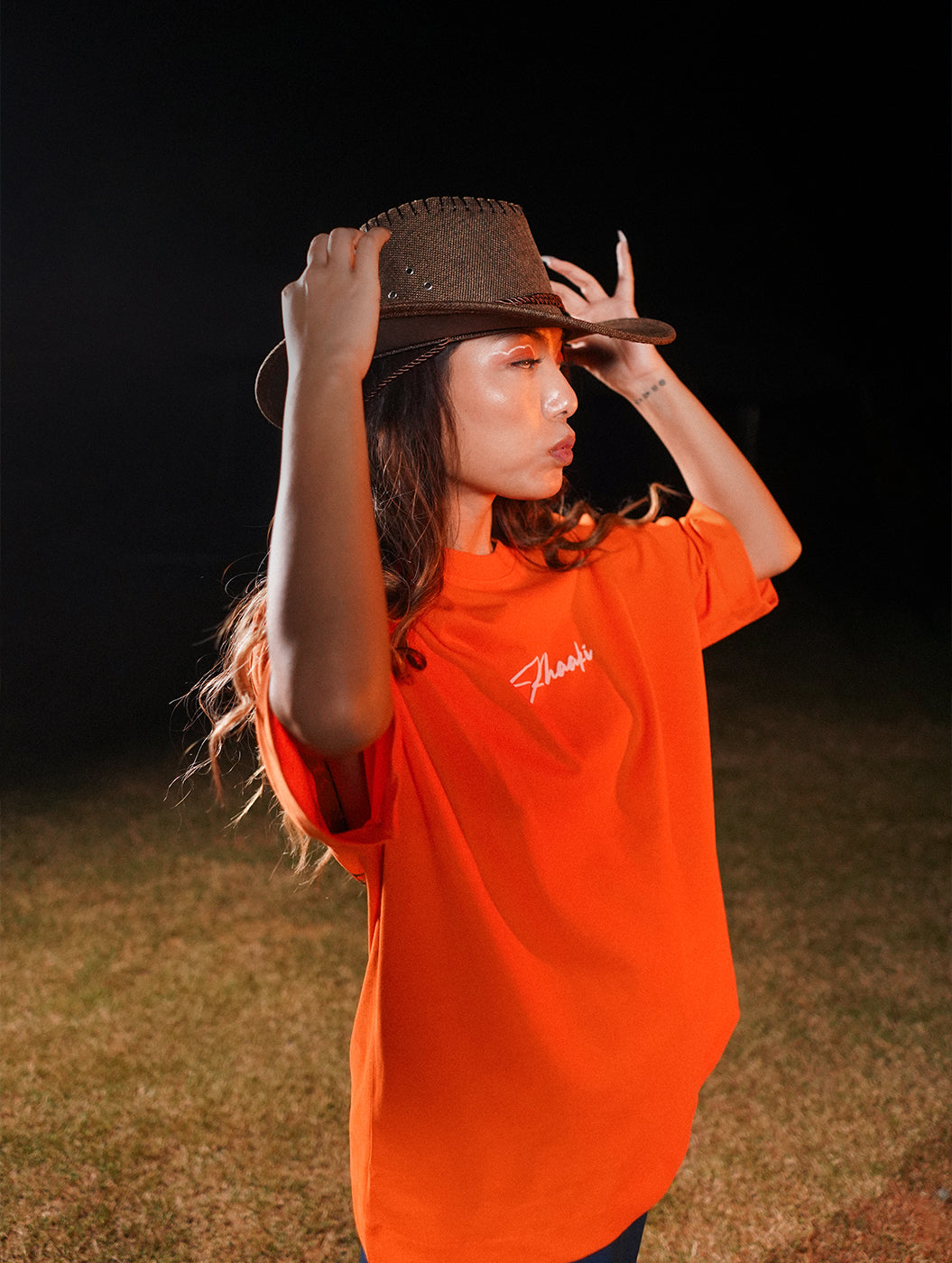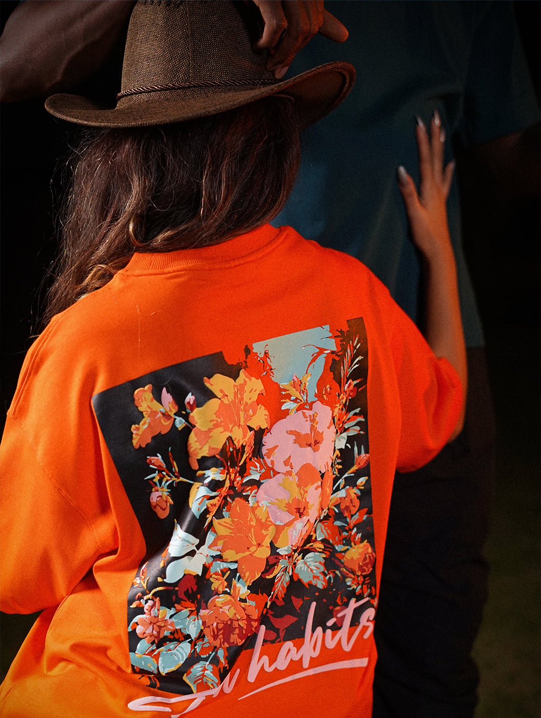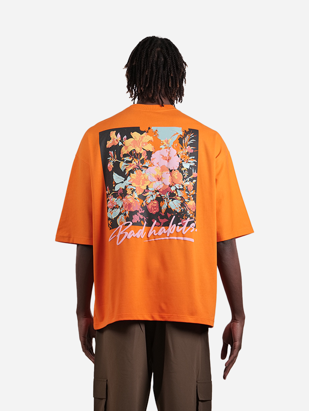 Bad Habits - Orange Graphic Drop Shoulder Unisex Oversized T-Shirt