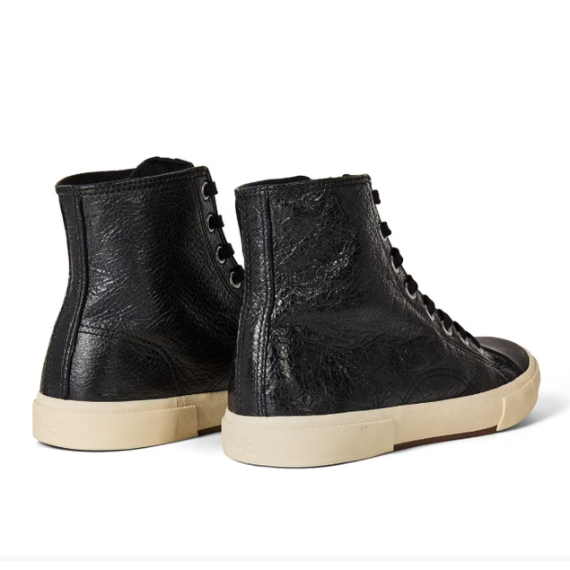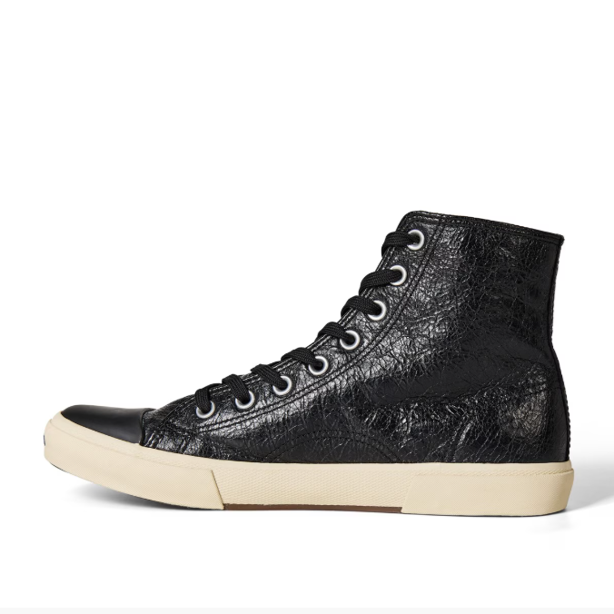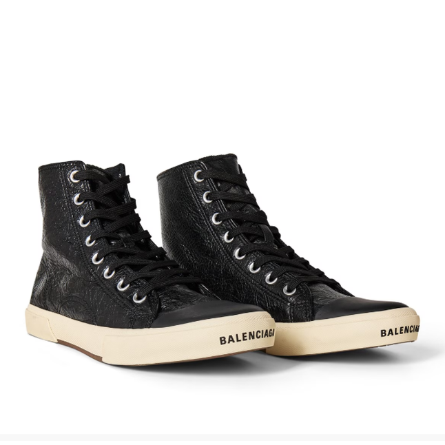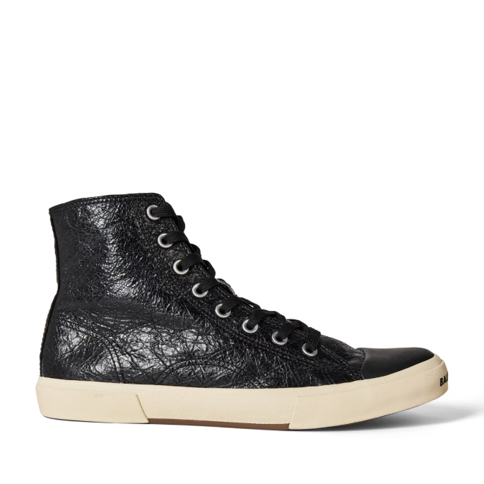 The Balenciaga Paris High Tops in Black represent a masterclass in contemporary luxury footwear. Constructed from premium cotton canvas, these ankle-height sneakers feature a refined lace-up closure that delivers both security and style. The rubber sole and reinforced toe bed combine durability with understated elegance, while the intentionally distressed finish adds character and authenticity. Each pair reflects Balenciaga's unwavering commitment to superior craftsmanship, merging edgy aesthetics with timeless design principles. Perfect for discerning individuals who appreciate quality construction and sophisticated streetwear sensibility.