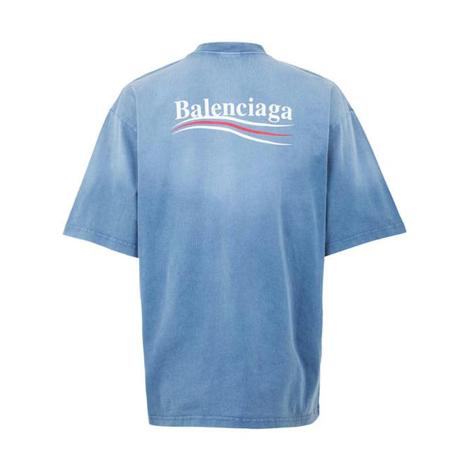 # Balenciaga Political Campaign T-Shirt This striking tee merges high fashion with bold social commentary, featuring Balenciaga's signature design sensibility applied to political messaging. Crafted from premium cotton, it delivers exceptional comfort without compromising on style. The campaign-inspired graphics showcase the brand's distinctive aesthetic—sharp, contemporary, and unapologetically statement-making. Perfect for those who view fashion as a form of expression, this piece transitions seamlessly from casual wear to styled looks. A conversation starter that reflects both sartorial sophistication and cultural awareness, it's an essential addition for collectors of conceptual luxury streetwear.
