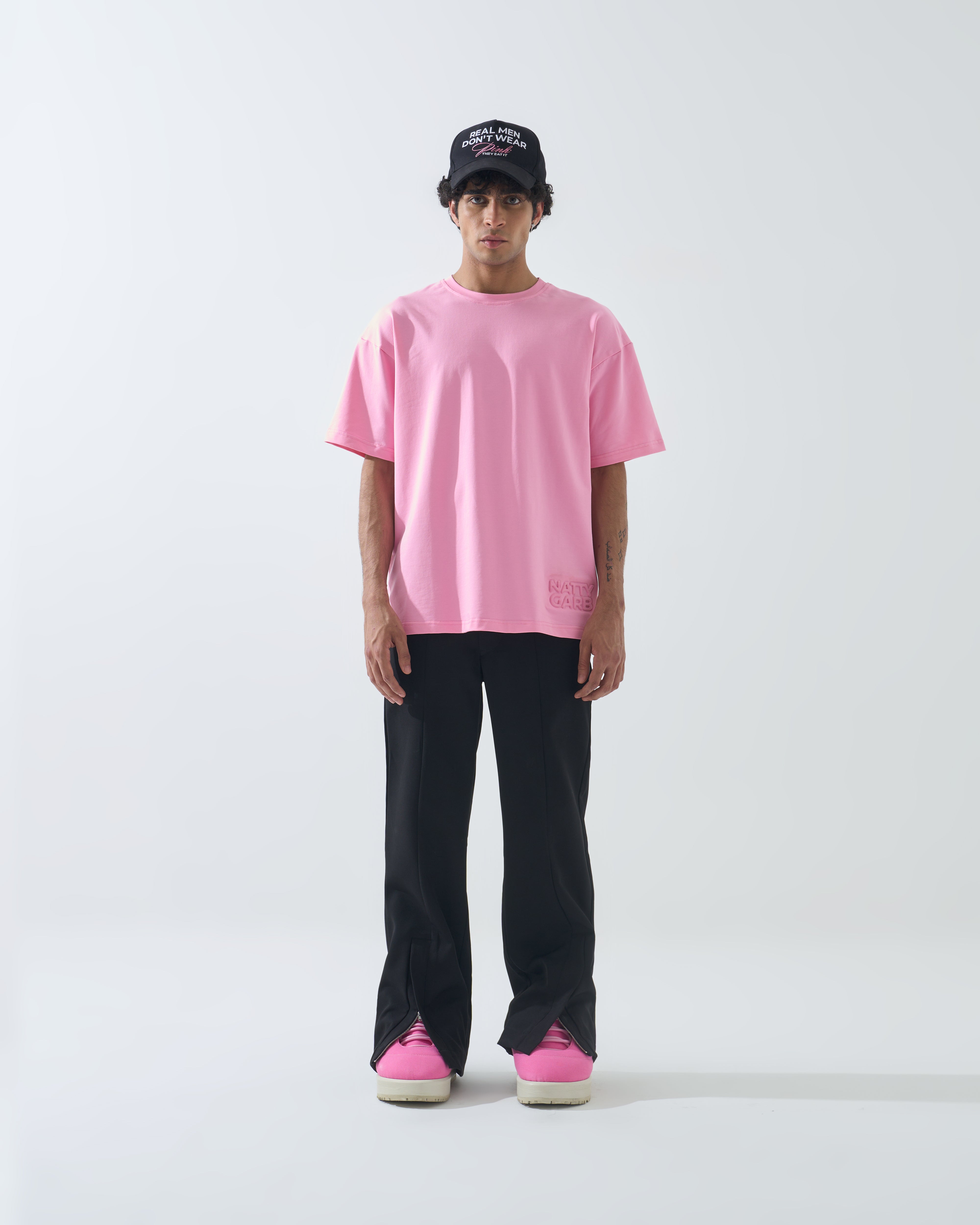 - NATTY GARB EMBOSSING ON THE LEFT BOTTOM, LOGO ON THE BACK.