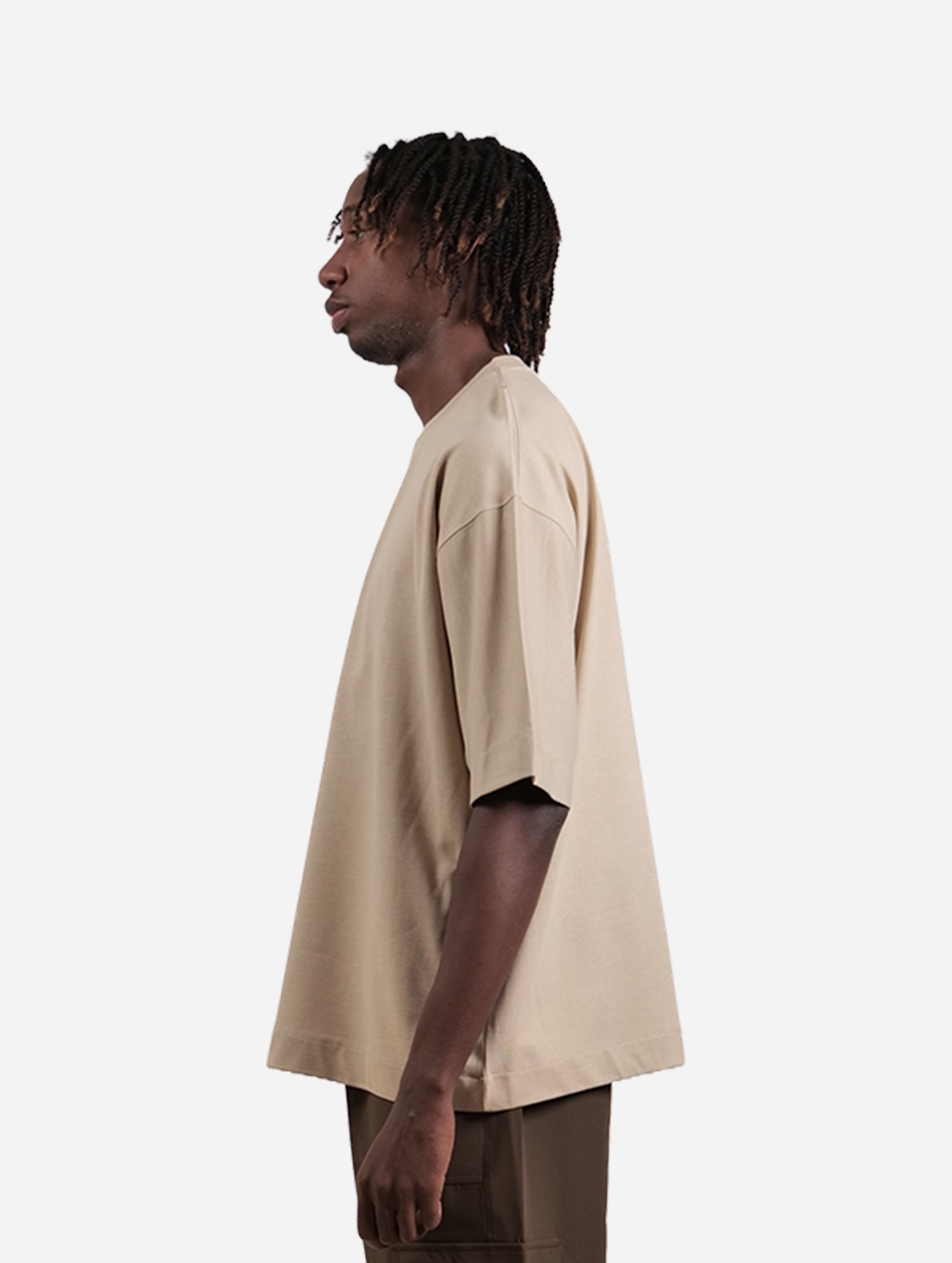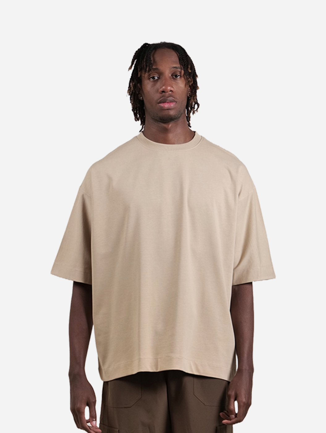 Basics - Beige Solid Drop Shoulder Unisex Plain Oversized T-Shirt