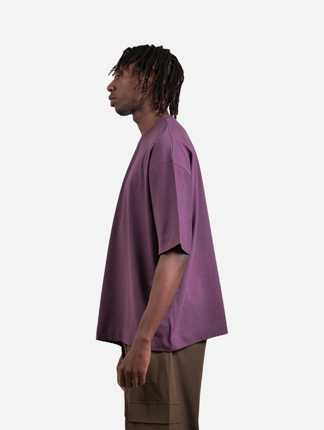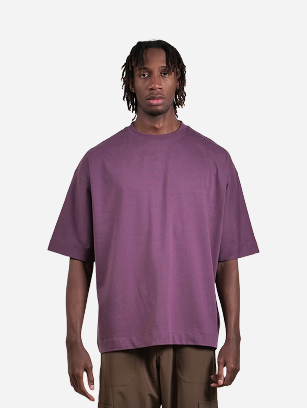 Introducing our oversized round-neck T-shirt, a timeless essential crafted from premium fine single jersey for unmatched softness and breathability. Designed for everyday comfort, this heavyweight tee offers a clean, minimal aesthetic that seamlessly fits into any wardrobe. The drop-shoulder silhouette enhances the relaxed fit, making it perfect for layering or wearing on its own. Pair it effortlessly with jeans, shorts, or joggers for a versatile, laid-back look.
