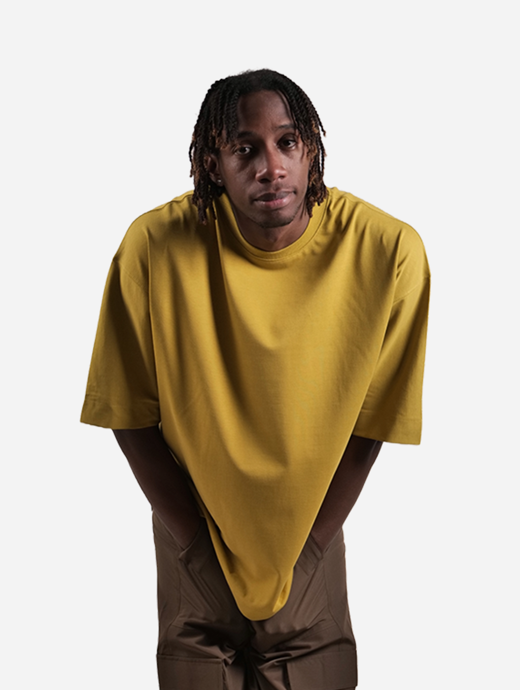 Introducing our oversized round-neck T-shirt, a timeless essential crafted from premium fine single jersey for unmatched softness and breathability. Designed for everyday comfort, this heavyweight tee offers a clean, minimal aesthetic that seamlessly fits into any wardrobe. The drop-shoulder silhouette enhances the relaxed fit, making it perfect for layering or wearing on its own. Pair it effortlessly with jeans, shorts, or joggers for a versatile, laid-back look.