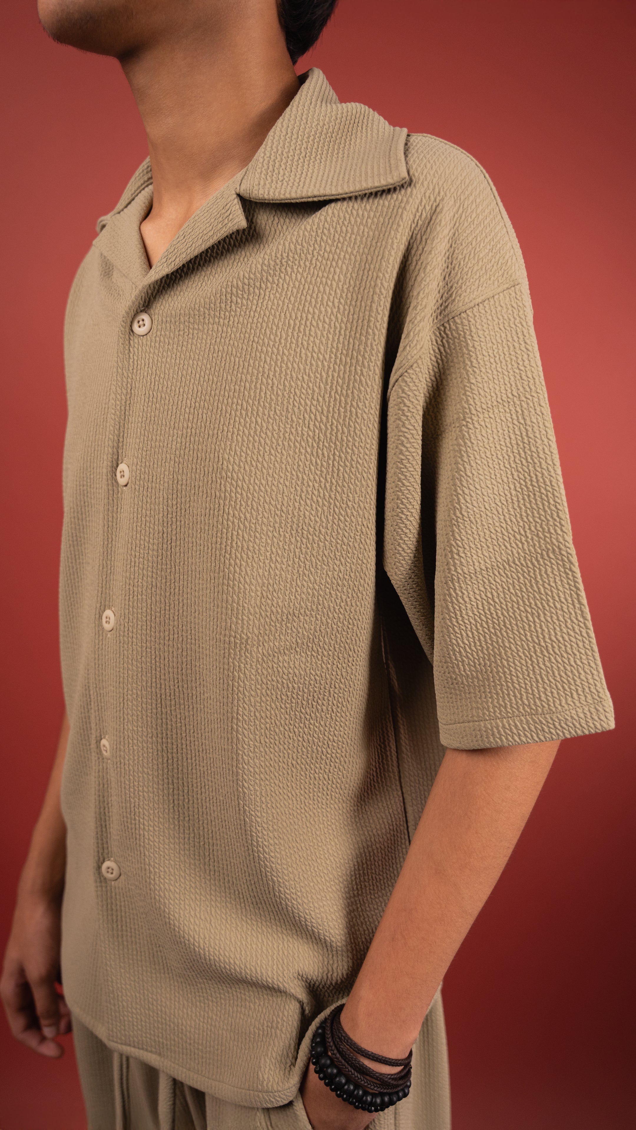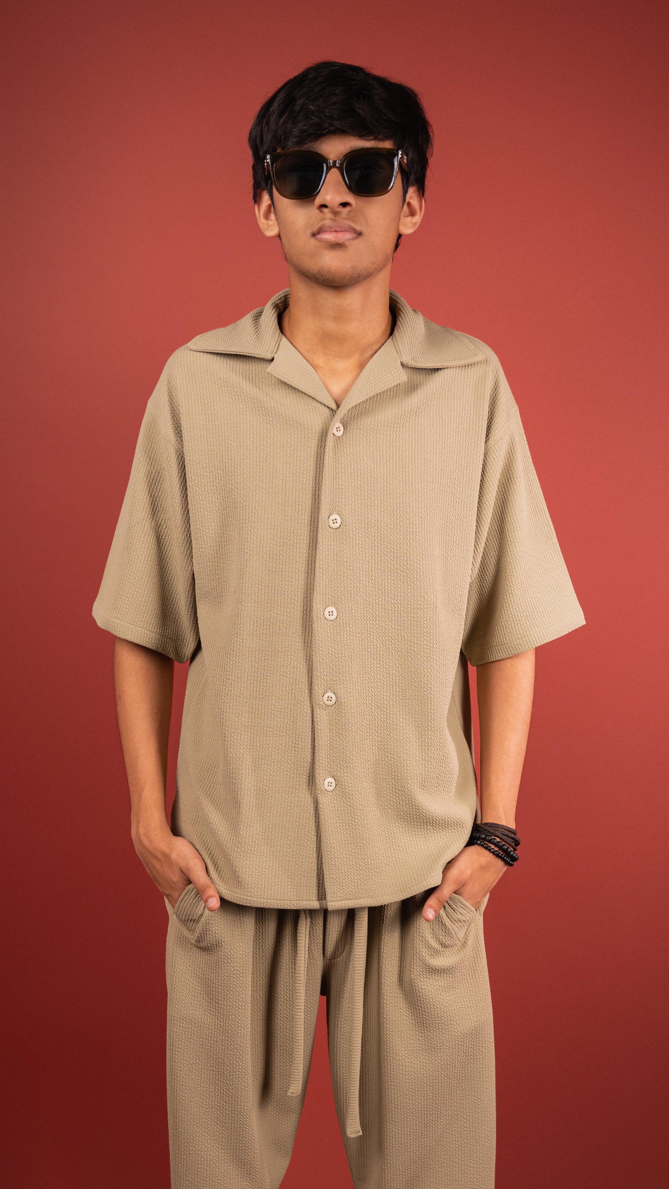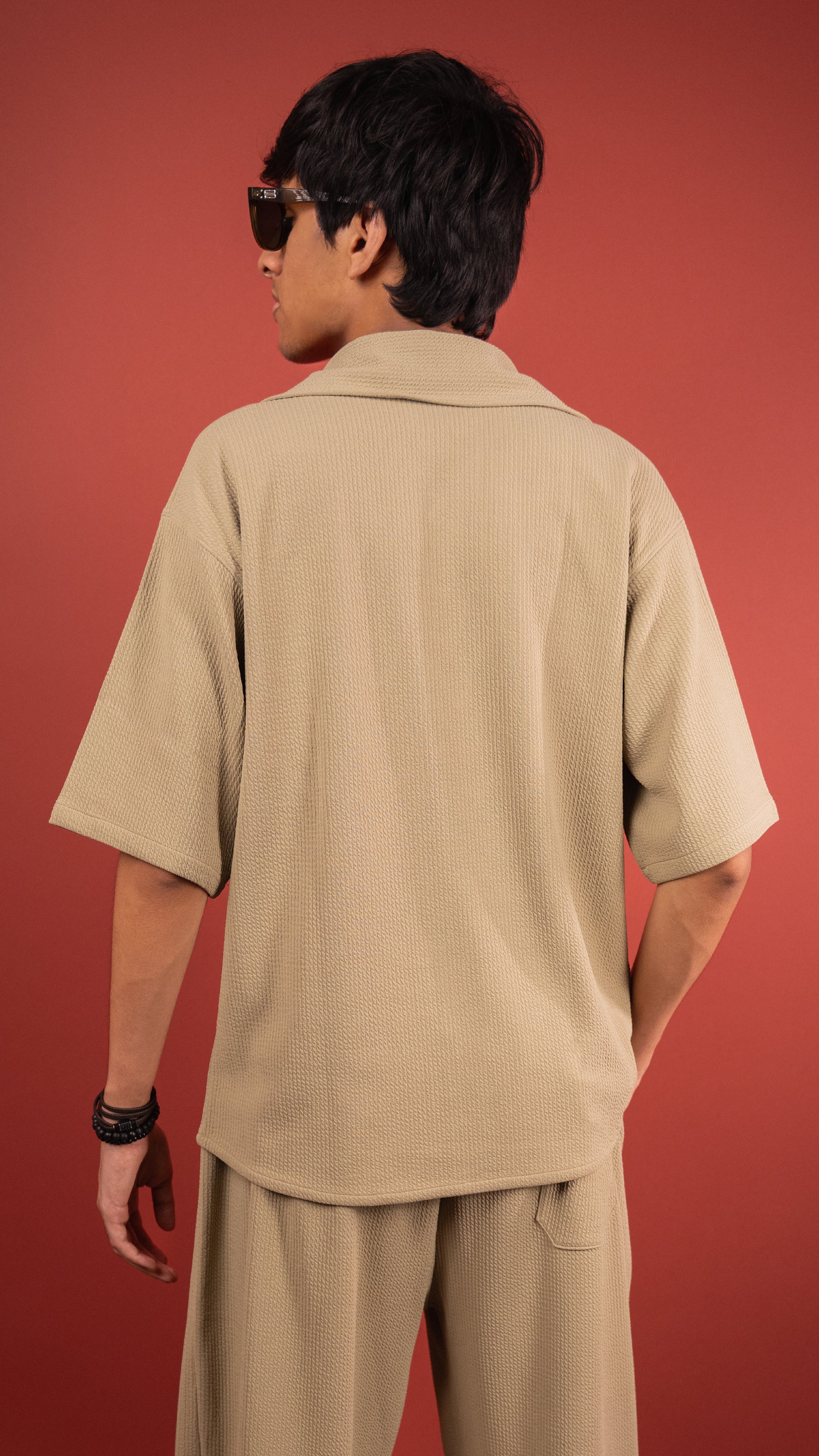 A relaxed Cuban collar and oversized silhouette give this piece major airport energy. Made to match with the Beige Co-ord Pants, it’s a fit built for street statements and travel drip alike. Light, breathable, and effortlessly elevated.
