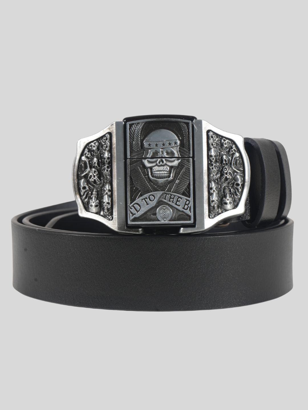 Lighter: Refillable metal lighter housed in the central skull motif; compatible with standard lighter fluid