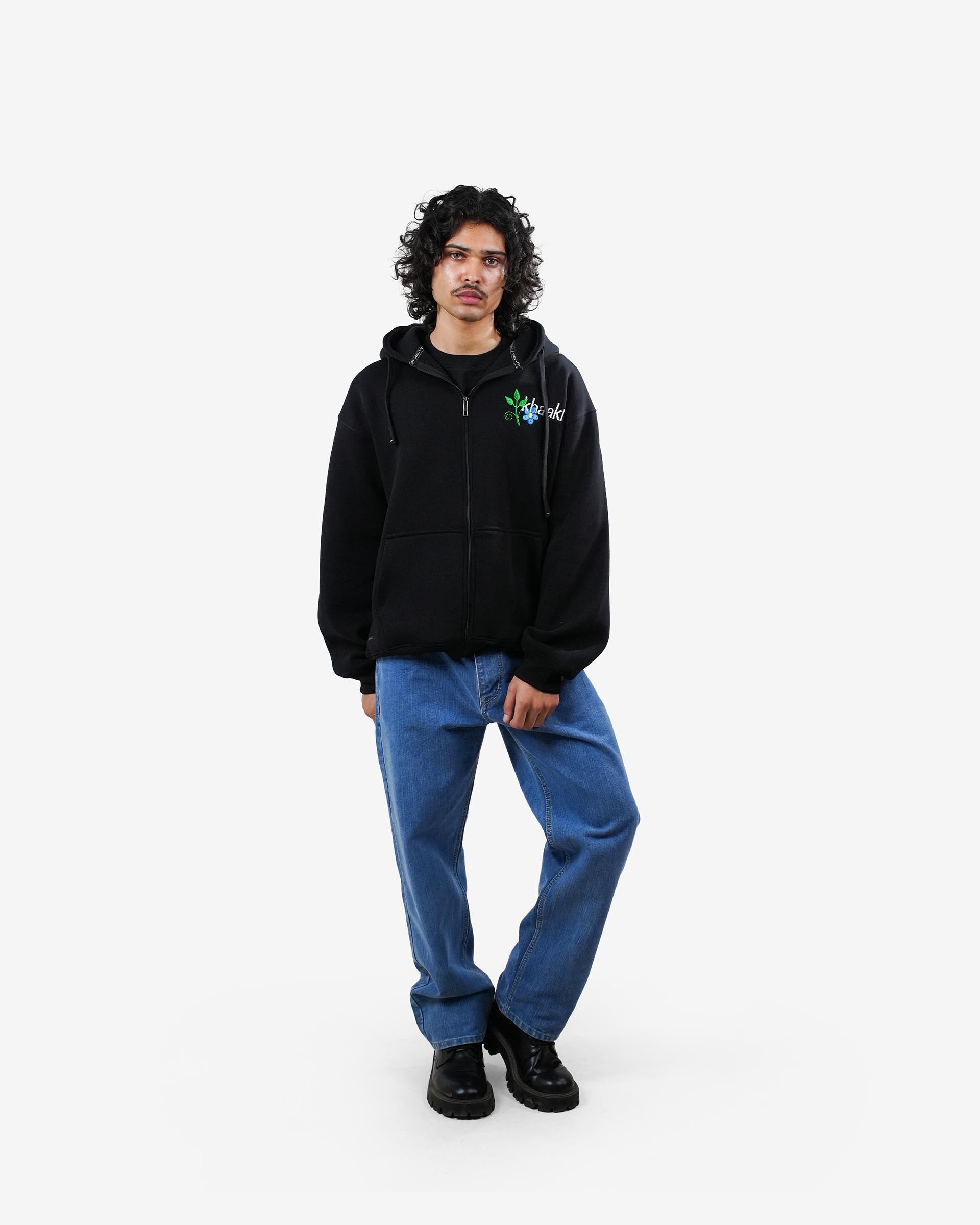 Designed as an oversized hooded zip-up, it features intricate 3,00,000+ stitch embroidery and front–back embellishments that create rich texture and strong visual impact. Finished with durable 2x1 ribbing, this hoodie is built as a true statement piece.