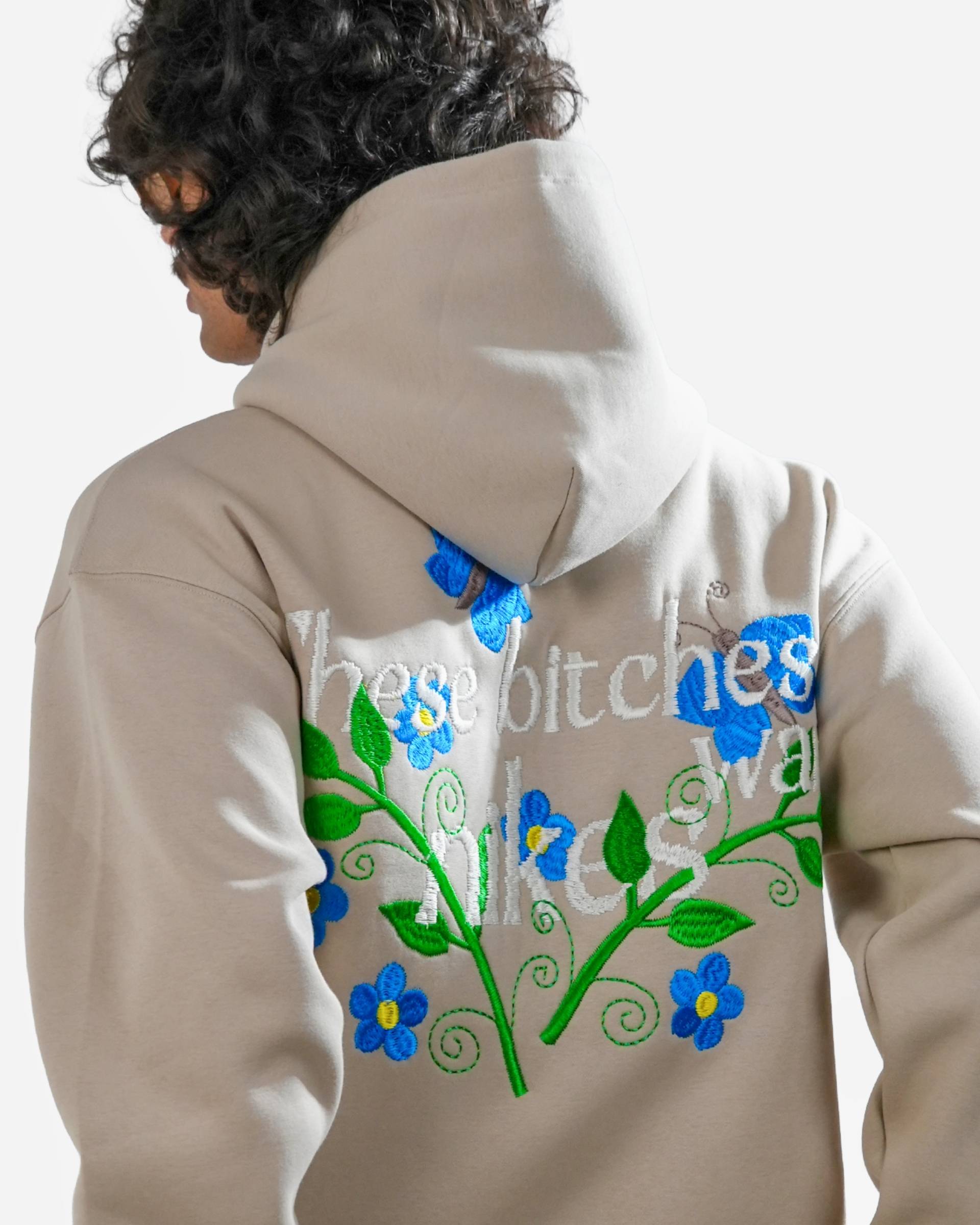 Bitch's Desire Hoodie - Grey Oversized Embroidered Hoodie
