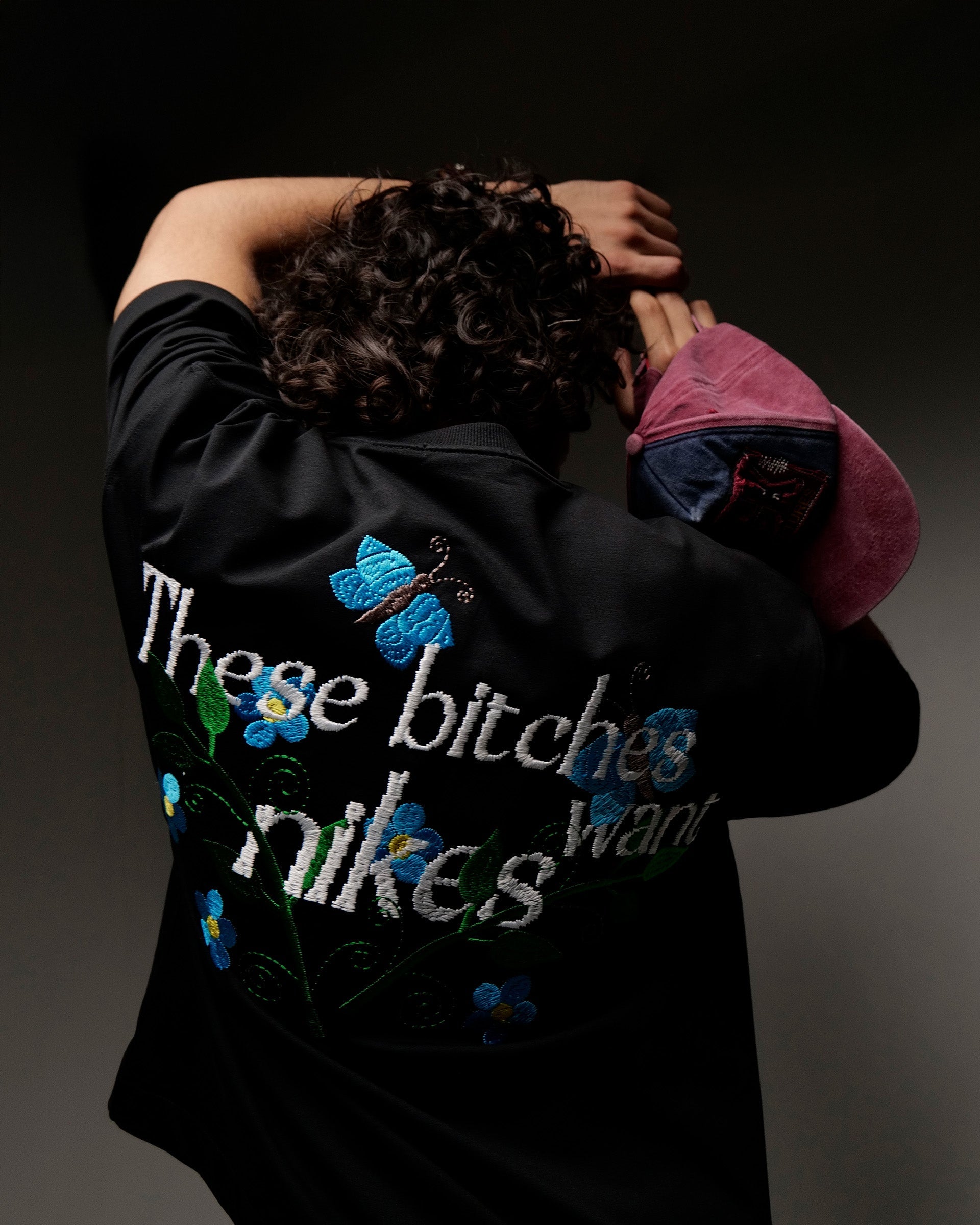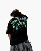 Bitch's Desires - Black Embroidered Oversized T-Shirt