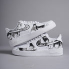 Step into the world of manga with the BLACK DEATH NOTE AF1. Featuring iconic anime characters from Death Note, these shoes are straight out of a comic book. In classic black and white, these kicks are a must-have for any manga fan. (No Shinigami included.)