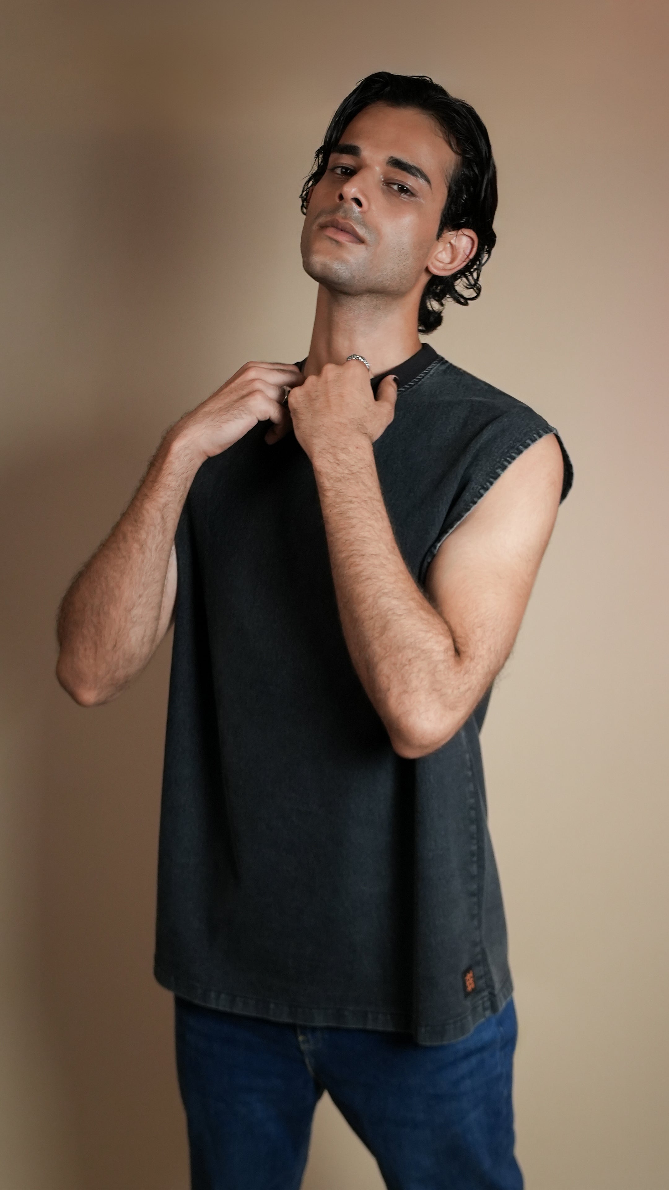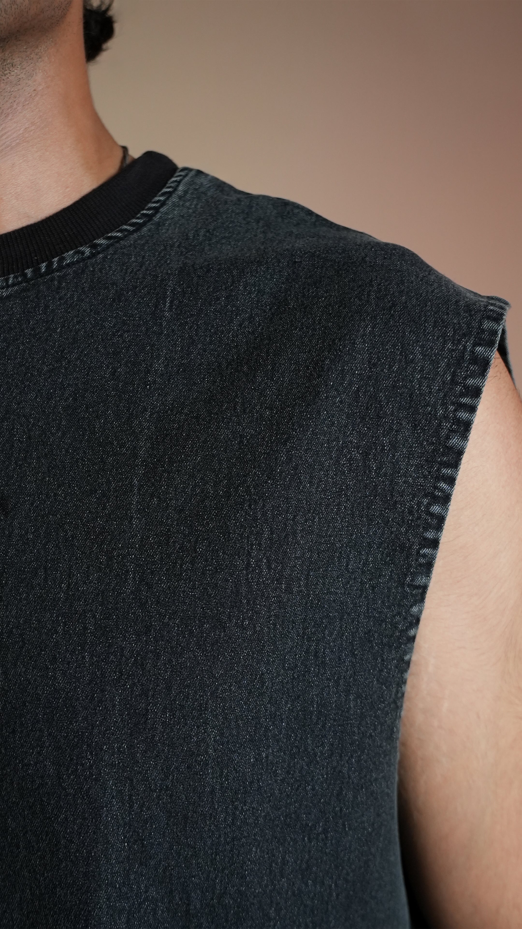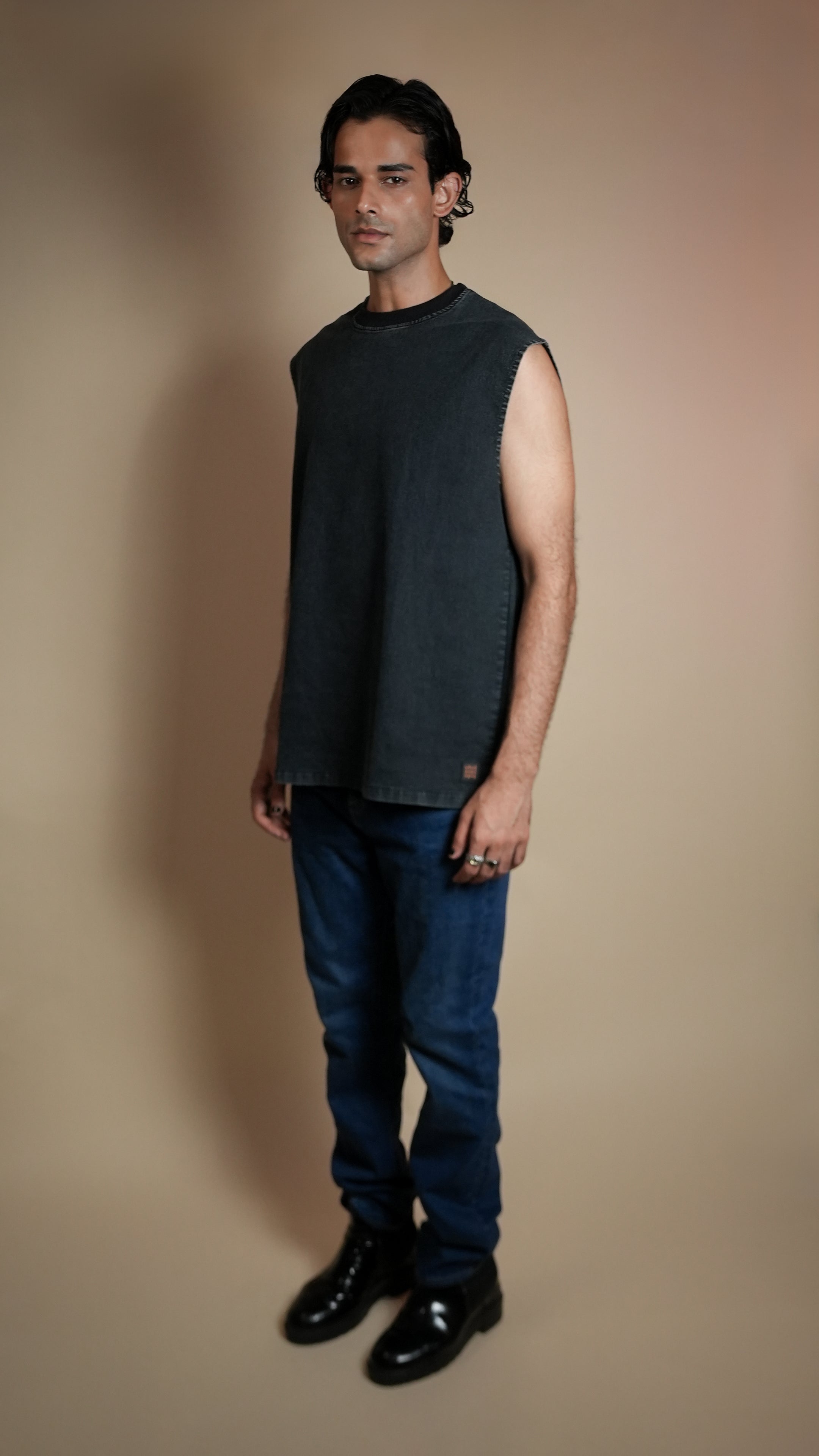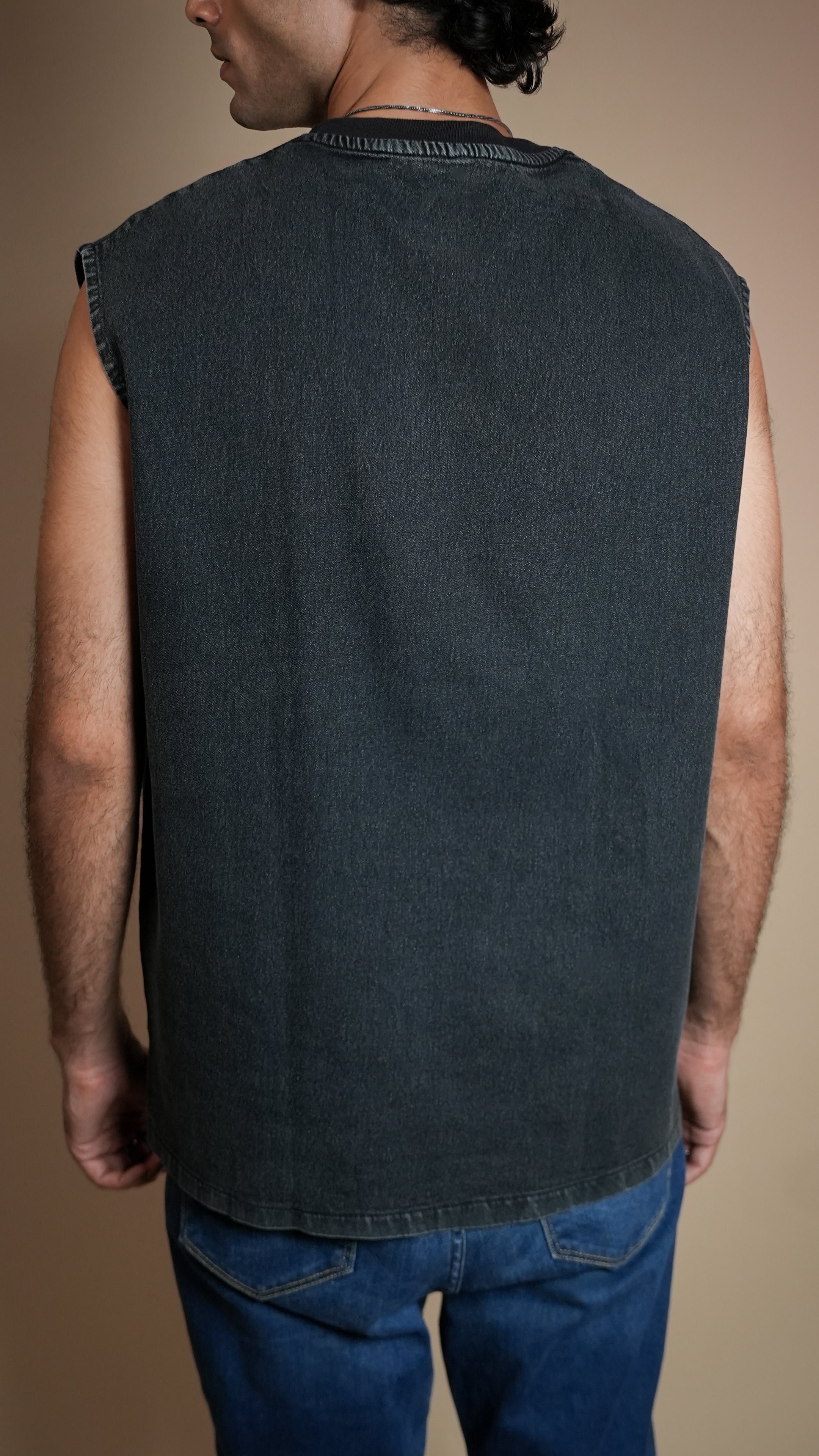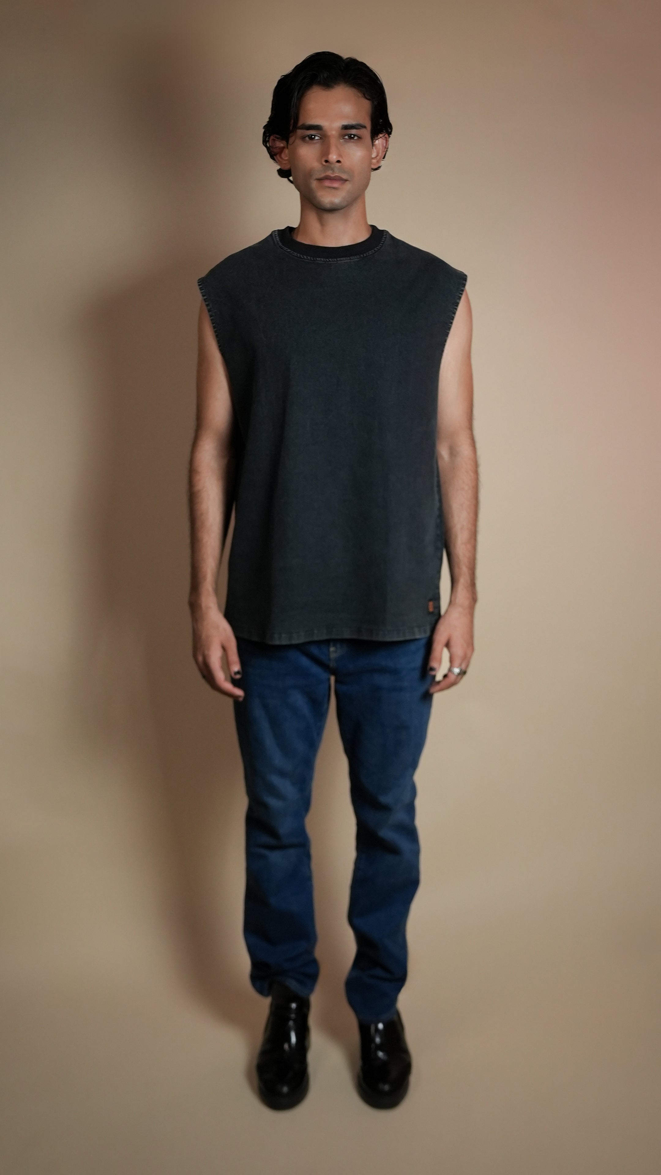 Made from lightweight 7 oz polyester-cotton blended denim, this breathable tank delivers comfort with an edge. Designed with deep-cut sleeves, sulphur-dyed and acid-washed for a raw vibe, and finished with antique accessories. Each piece is hand-cut and handcrafted for a one-of-a-kind finish.