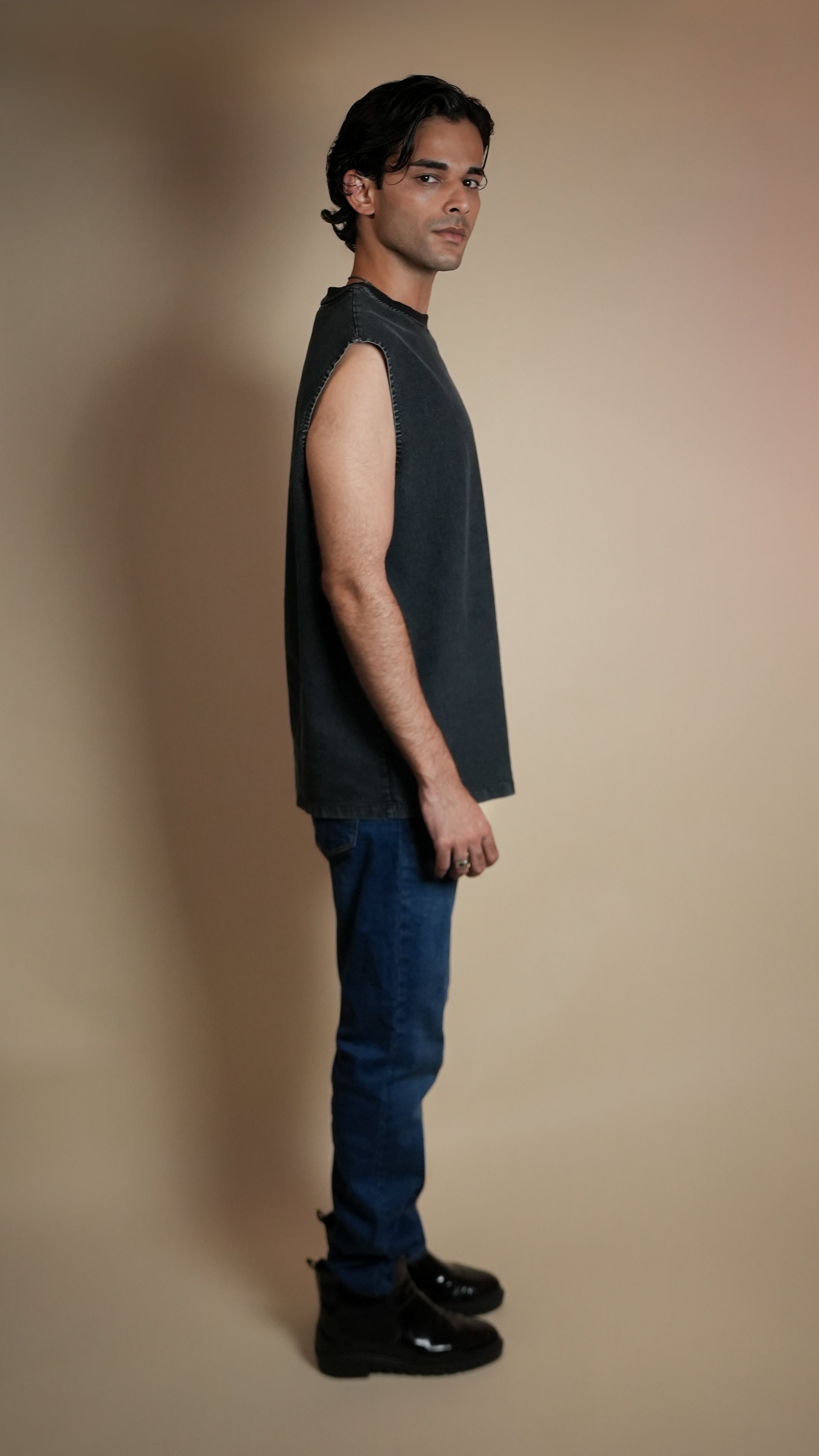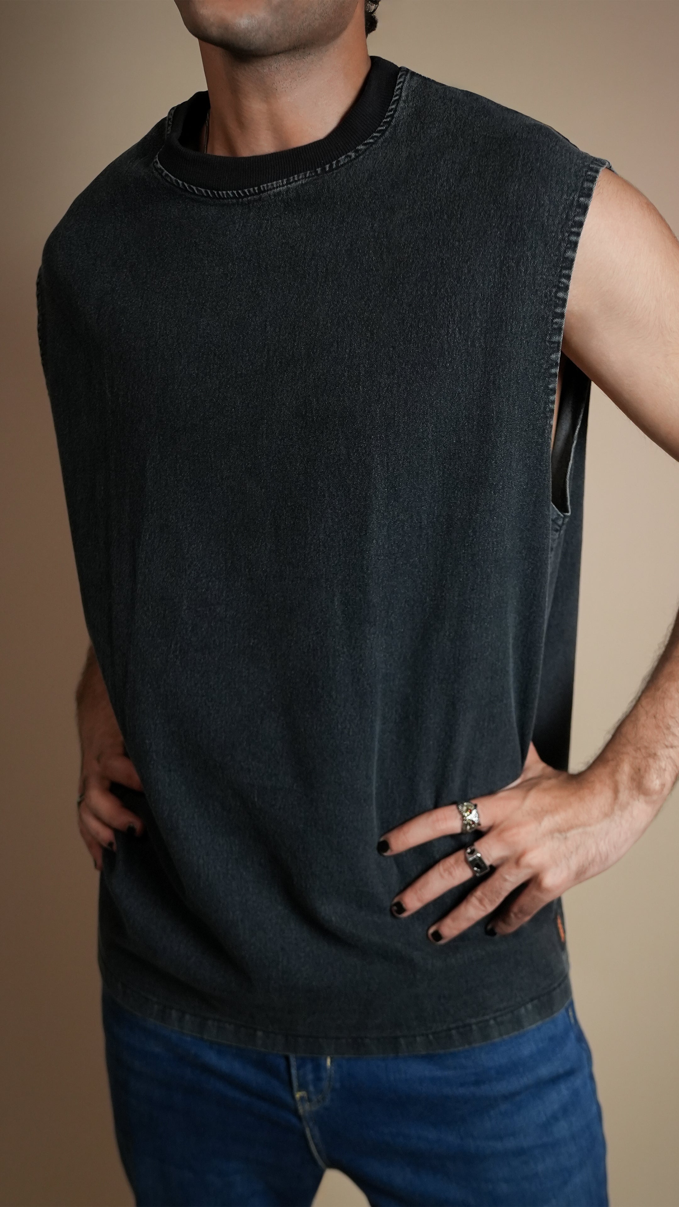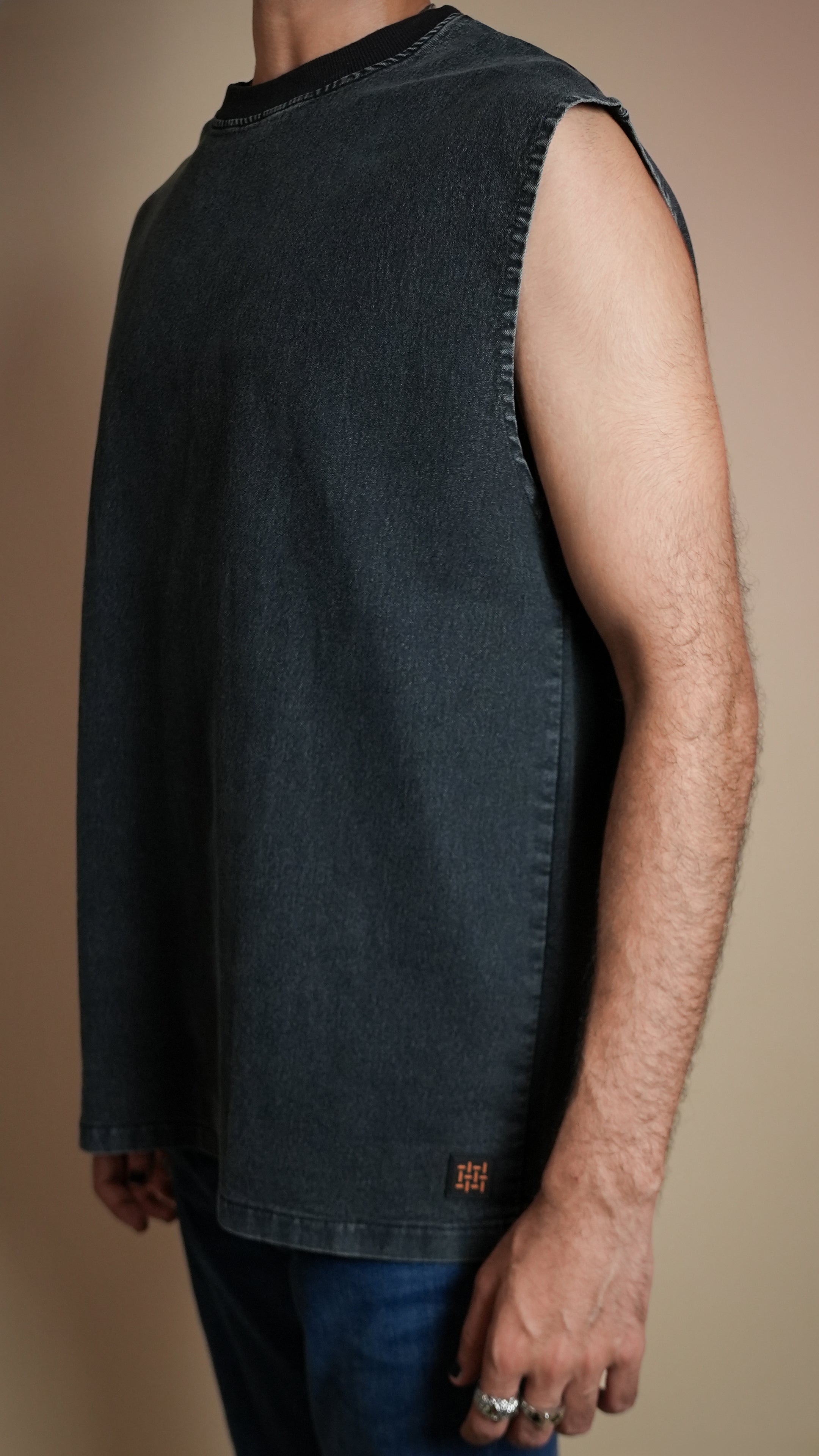 BLACK DENIM MEN'S TANK TOP