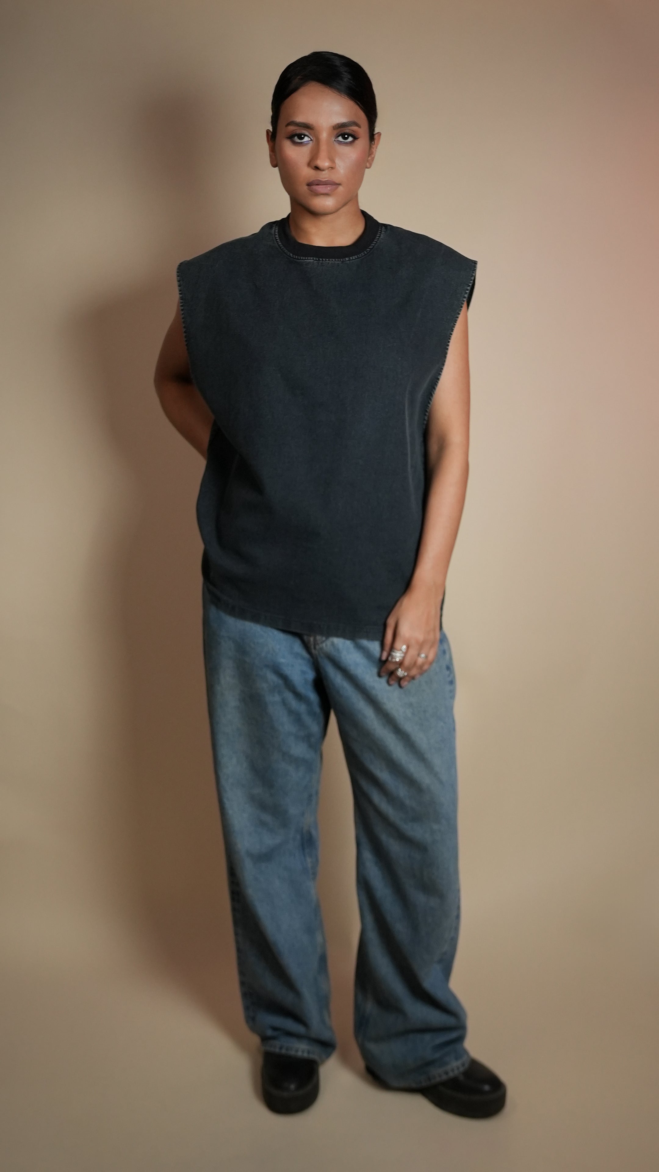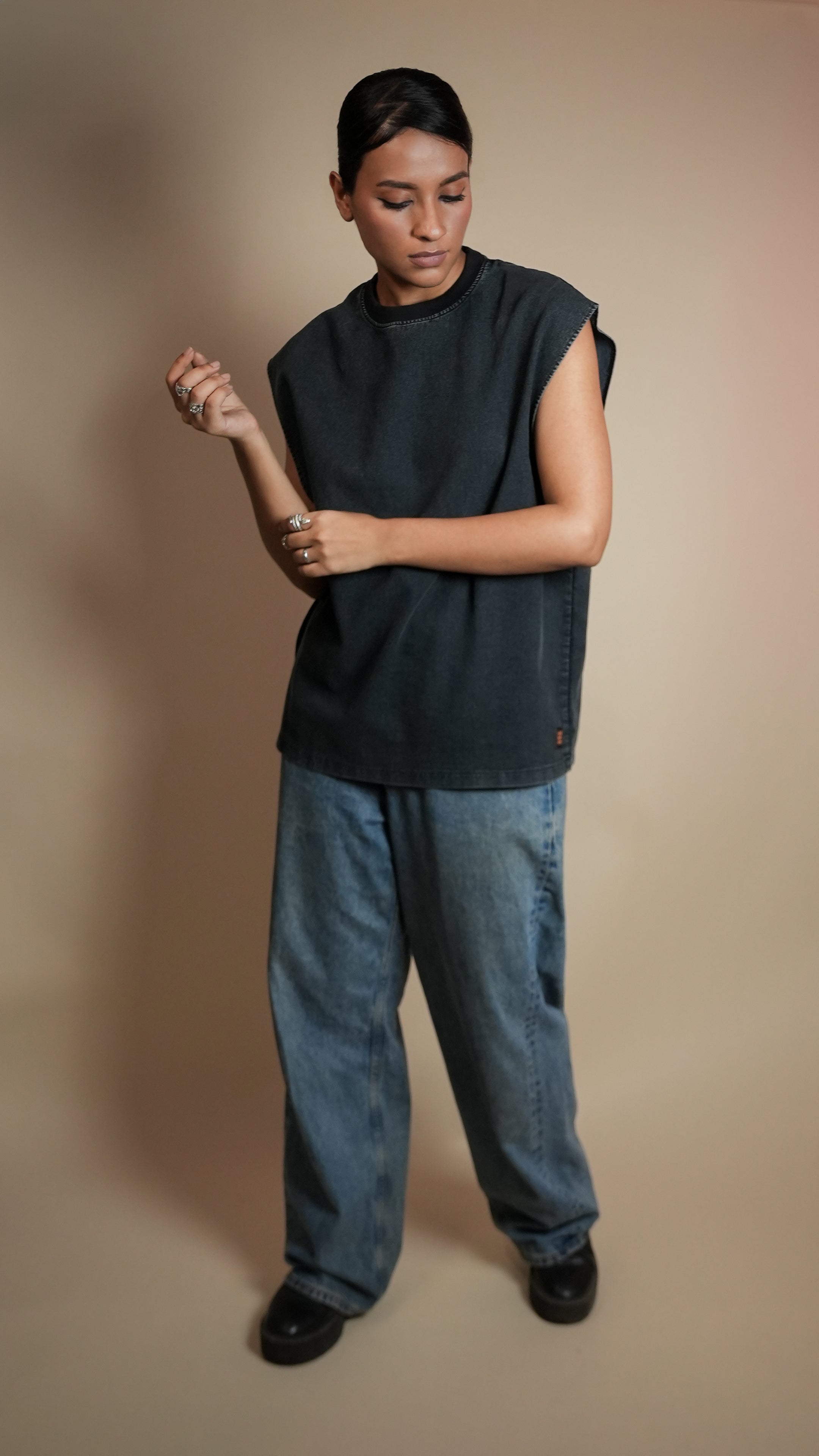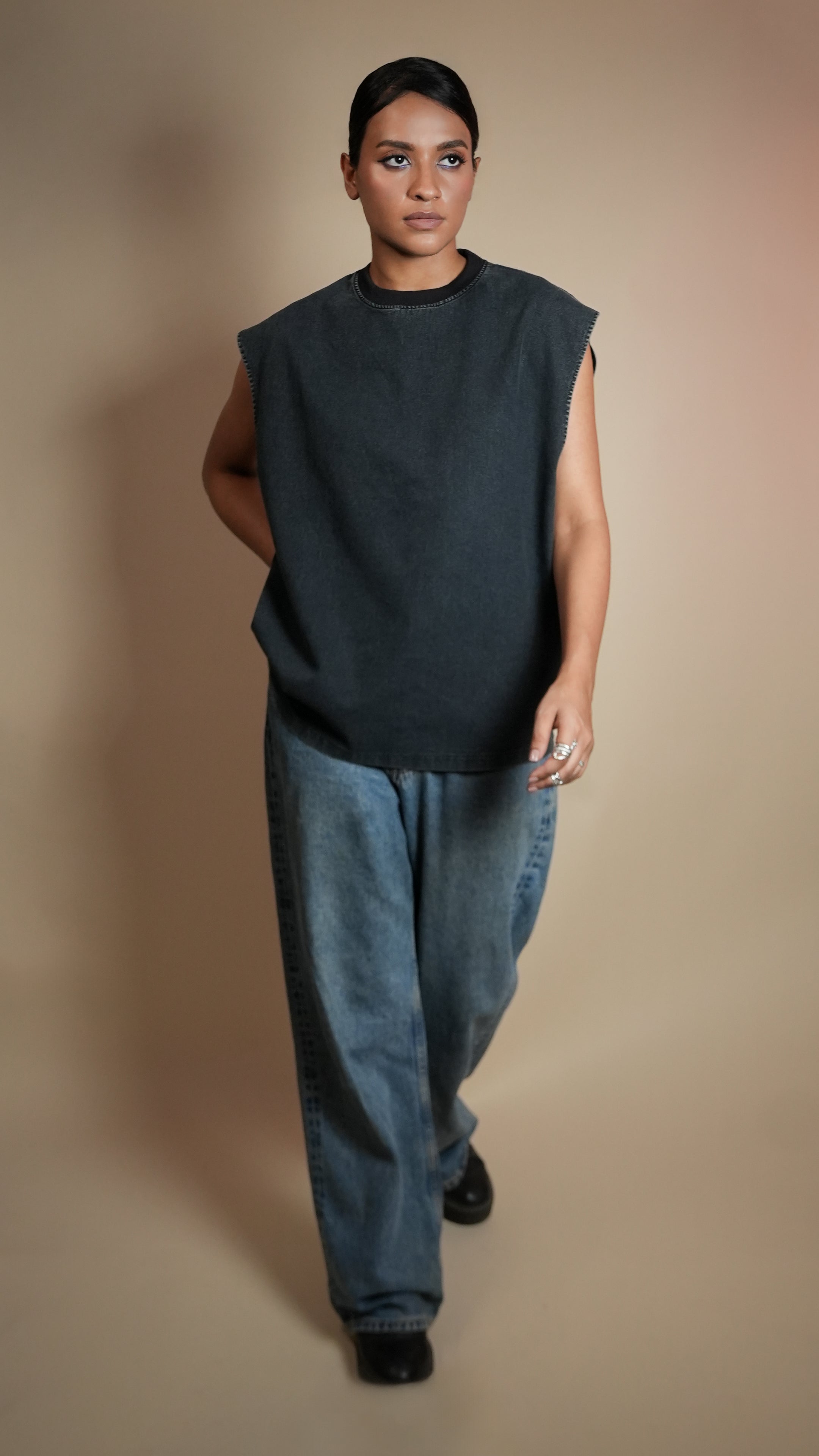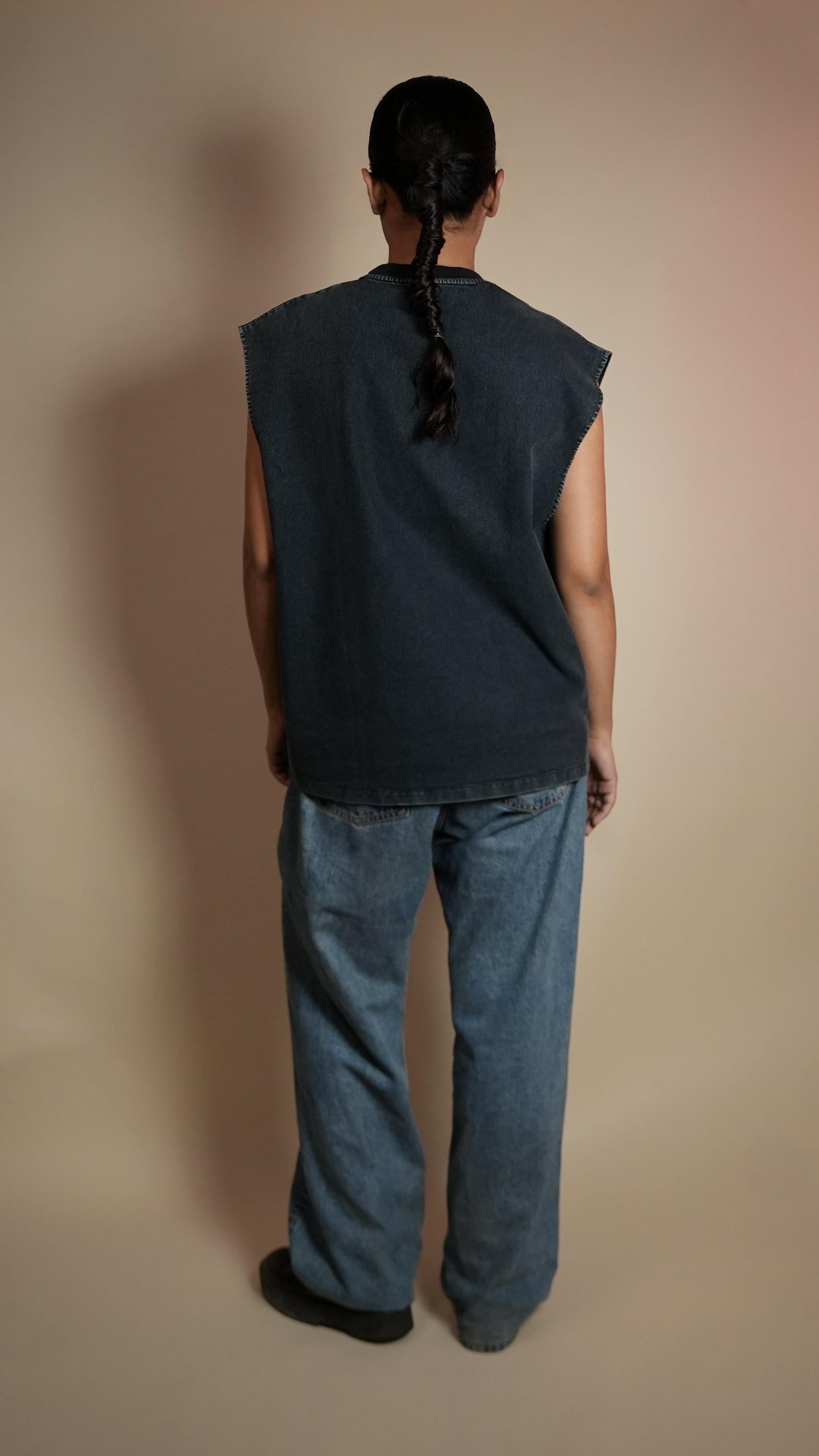 Made from lightweight 7 oz polyester-cotton blended denim, this breathable tank delivers comfort with an edge. Designed with deep-cut sleeves, sulphur-dyed and acid-washed for a raw vibe, and finished with antique accessories. Each piece is hand-cut and handcrafted for a one-of-a-kind finish.